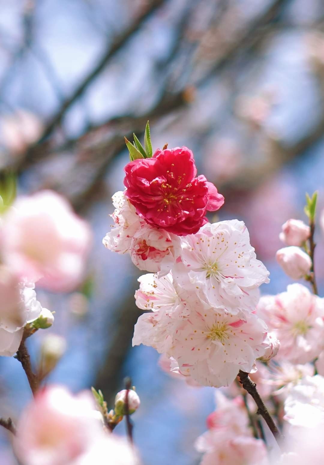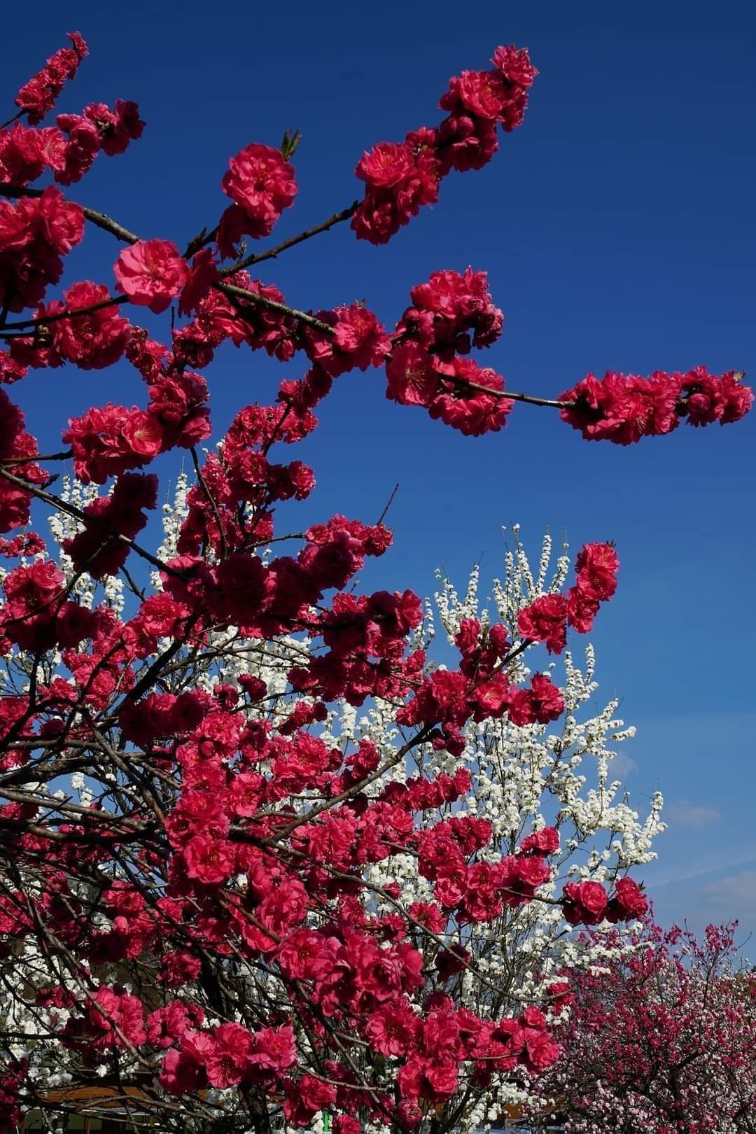 花桃の里有一条种植满5,000棵花桃树,花瓣有桃红色、白色和粉色,一颗树就能开出三色花桃,非常特别! 而全村最少有10,000棵花桃。