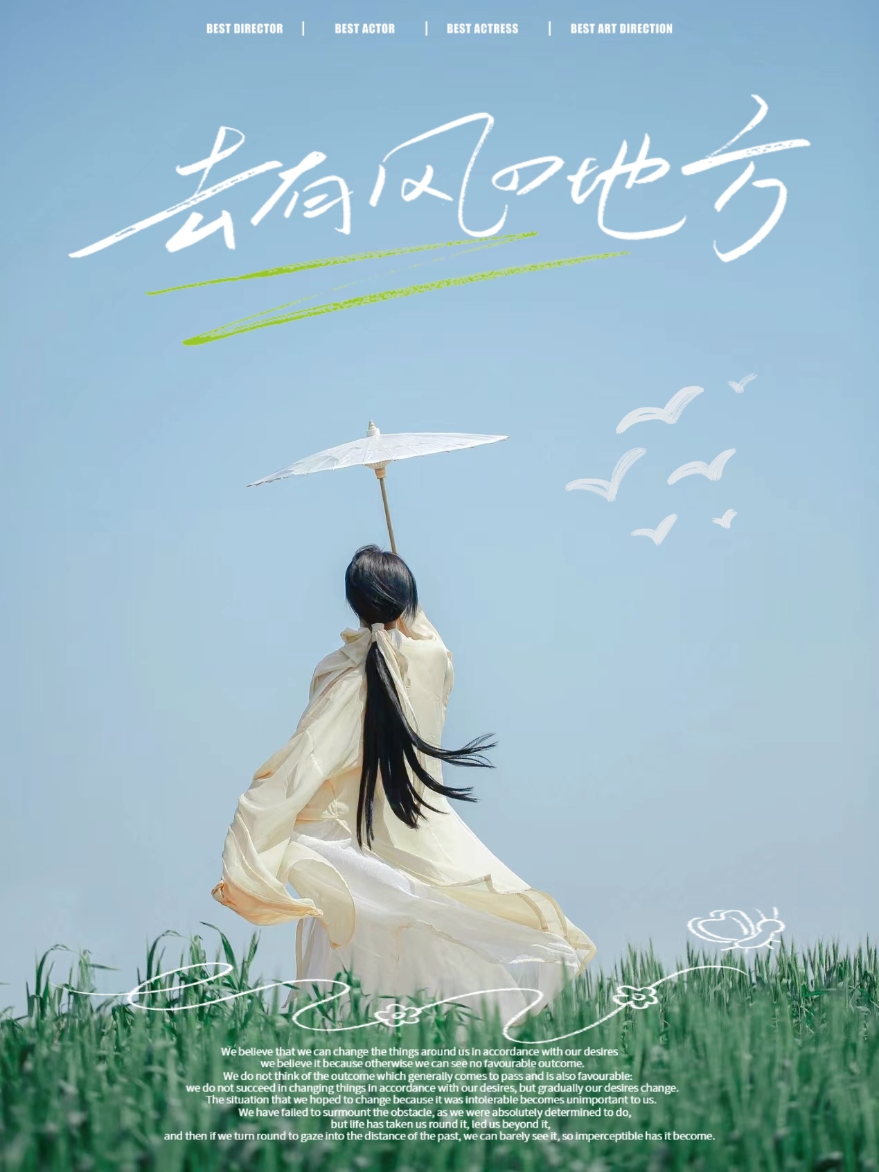 春天唯美海报|去有风的地方一键同款教程:1⃣点击右下角“使用-美图社区-美图秀秀