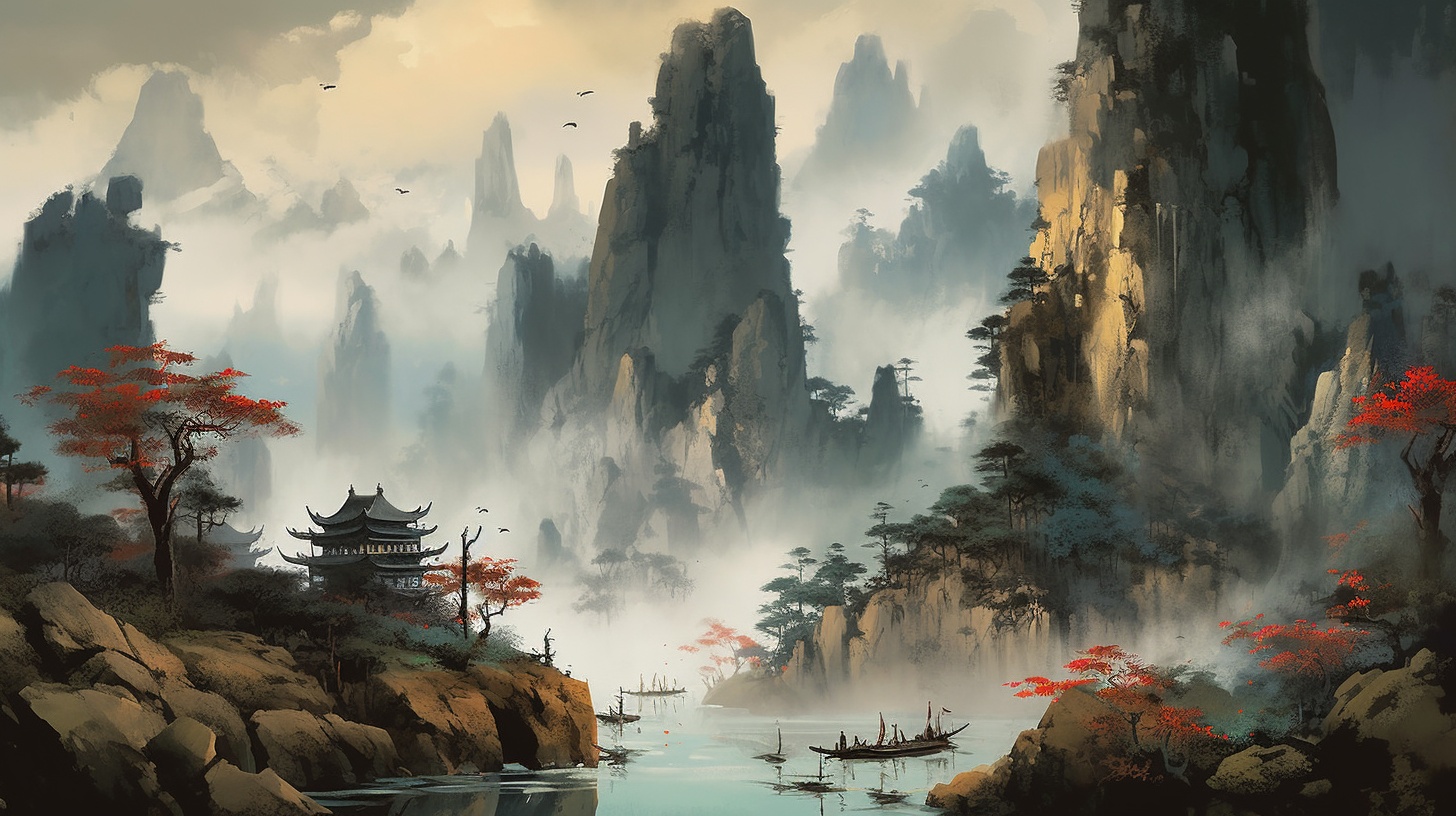古代山水画,以山、水、云、石等自然元素为主题,描绘出大自然的壮美和雄奇,同时也蕴含着丰富的哲学与文化内涵