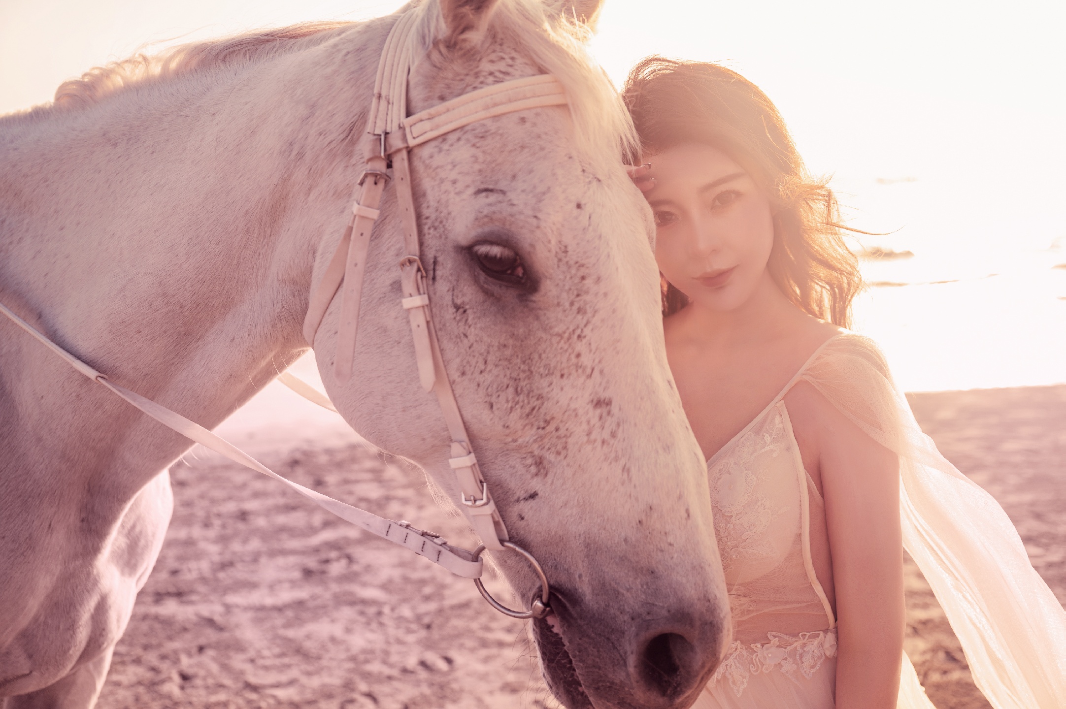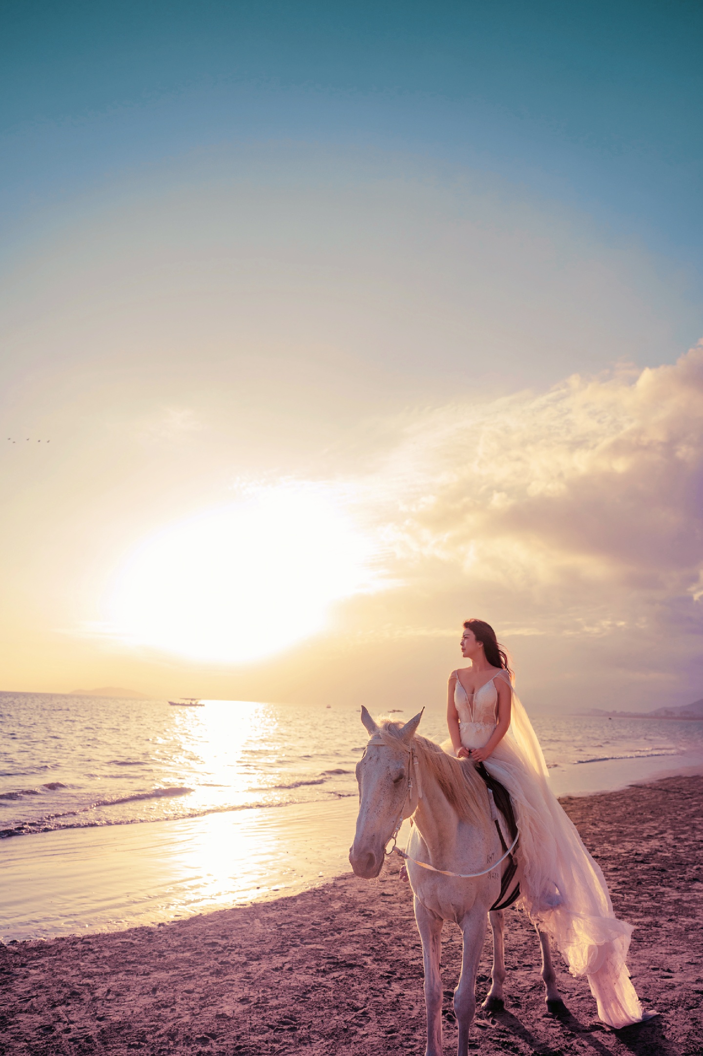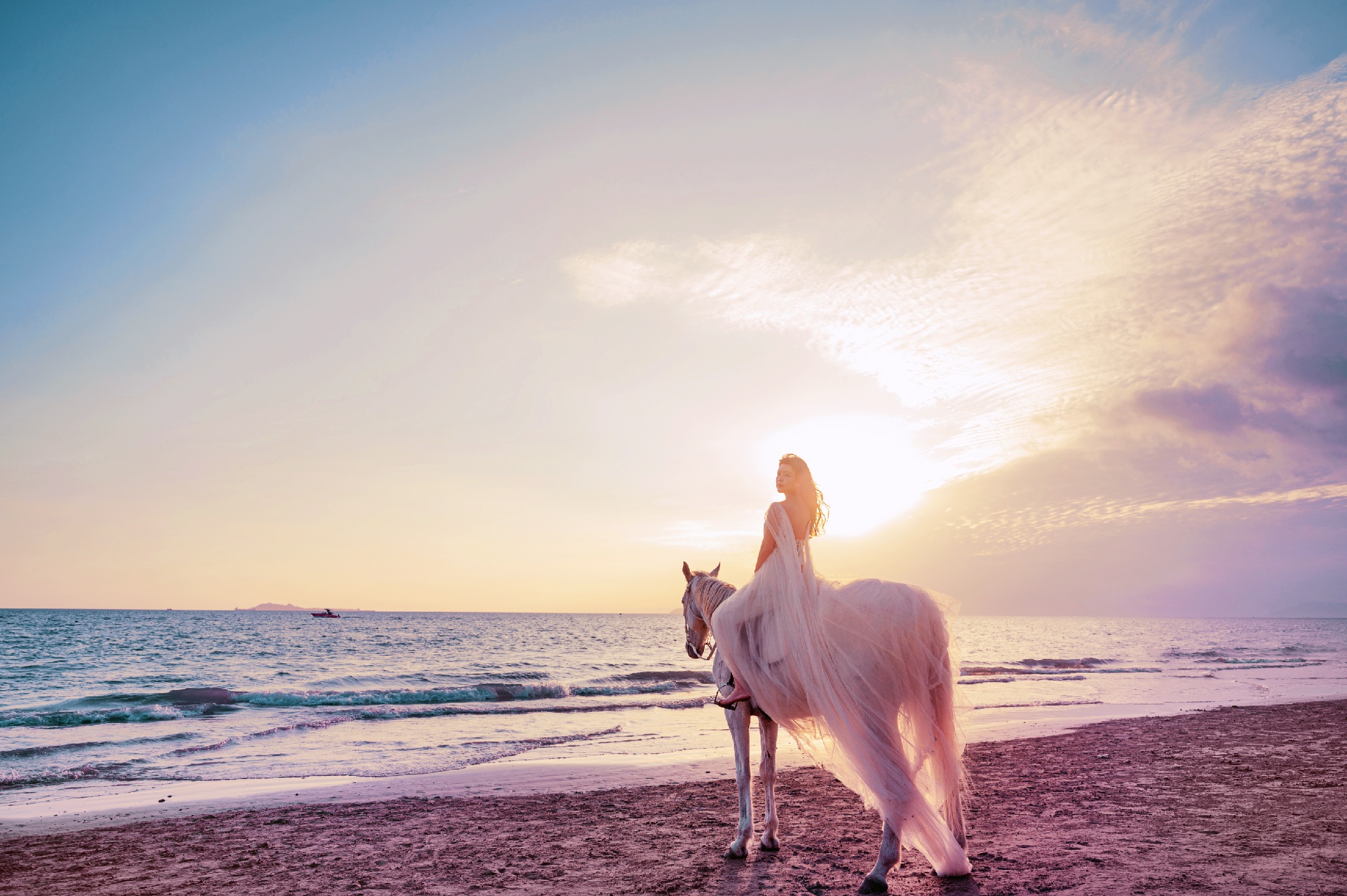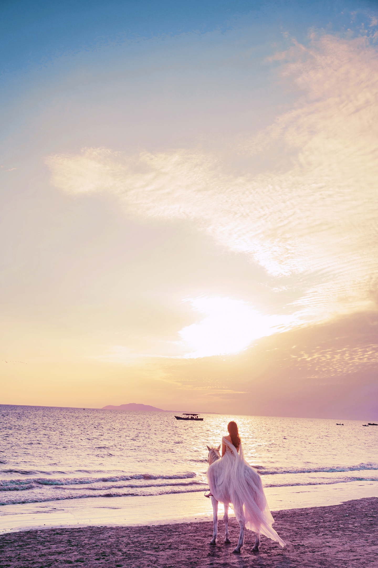 分分钟刷爆朋友圈!夕阳🌇海边🌊白马🐎
