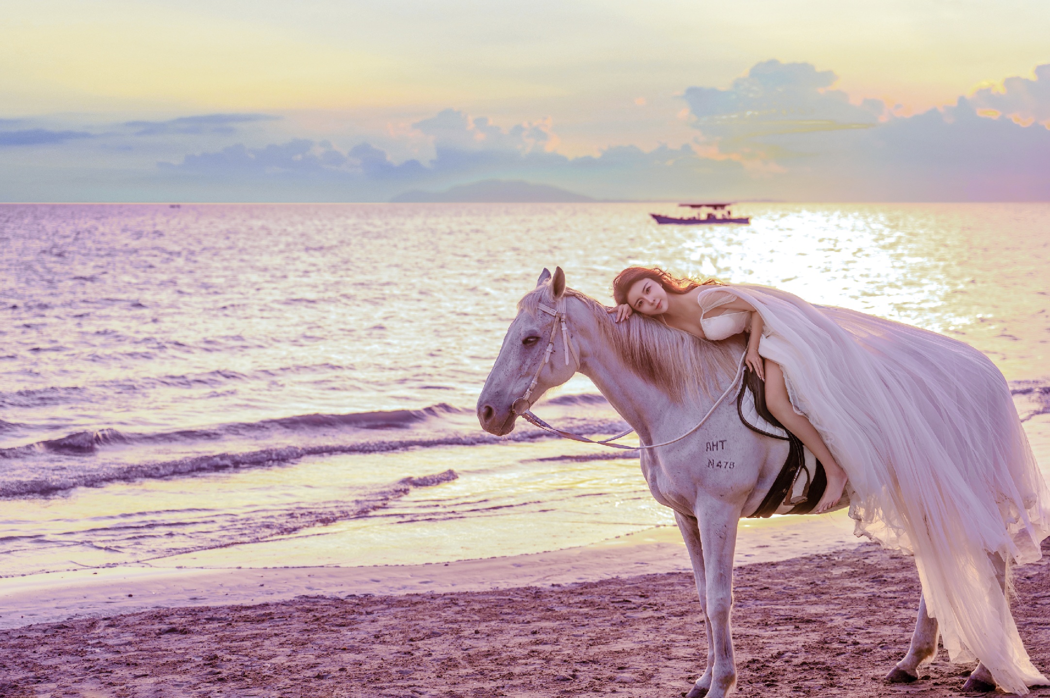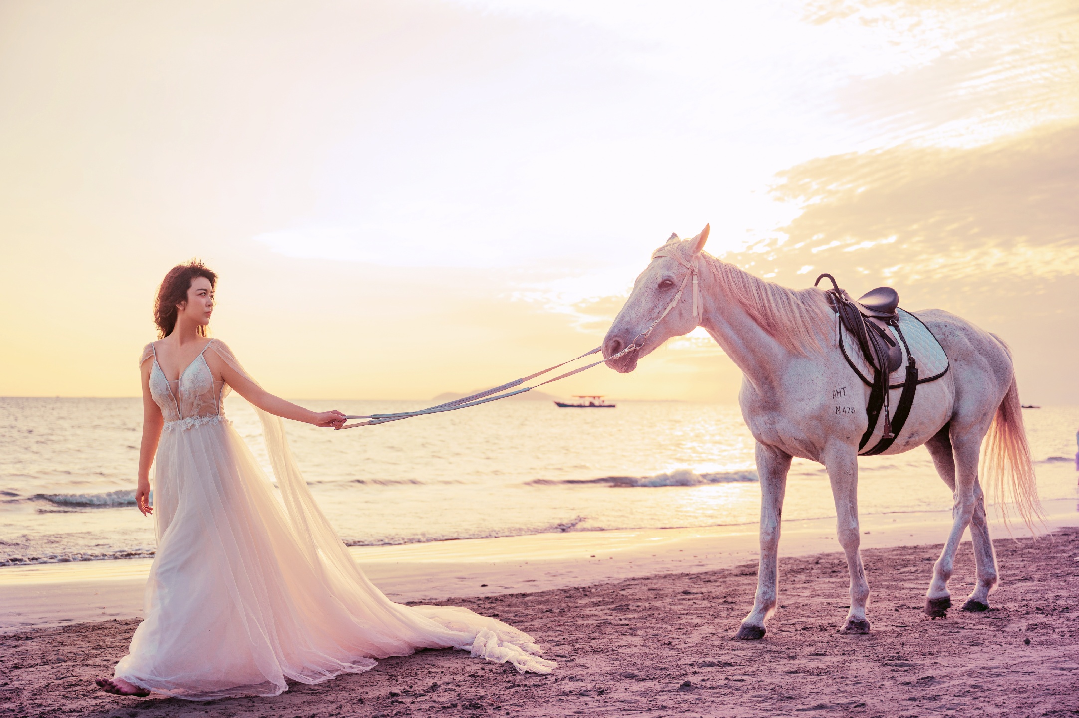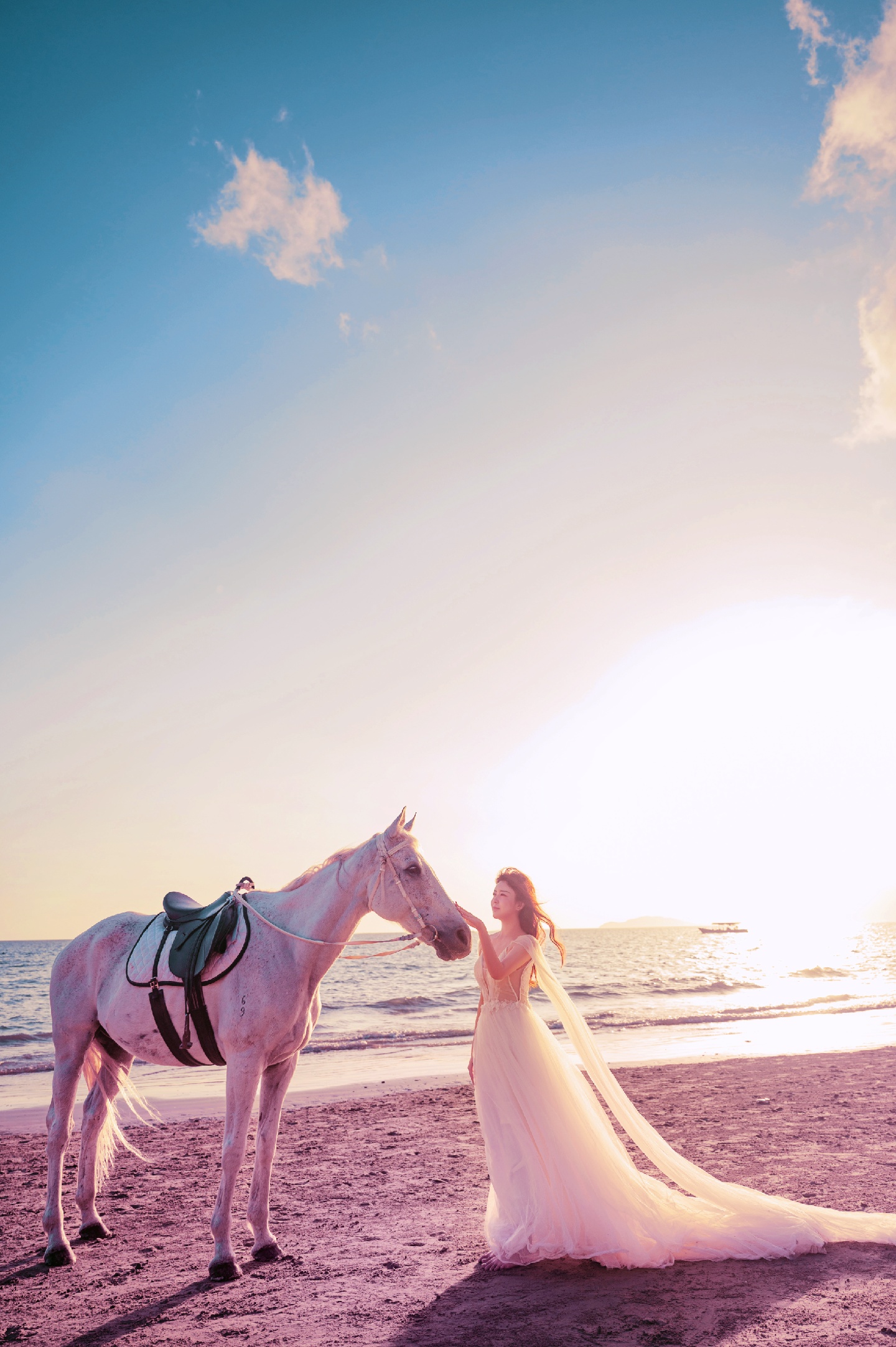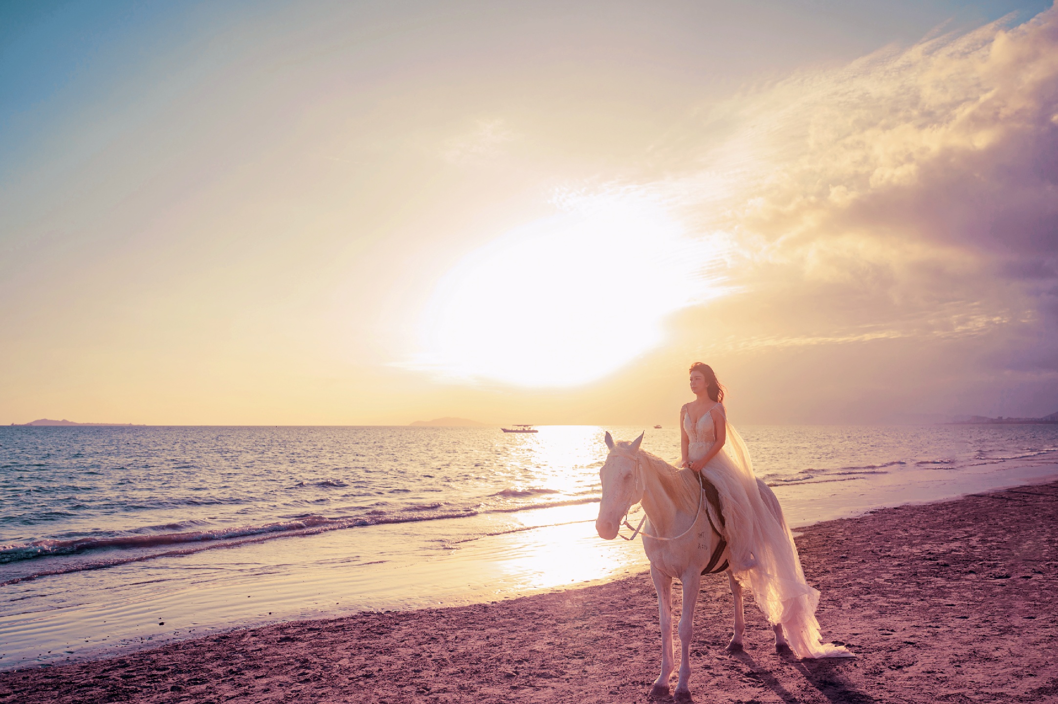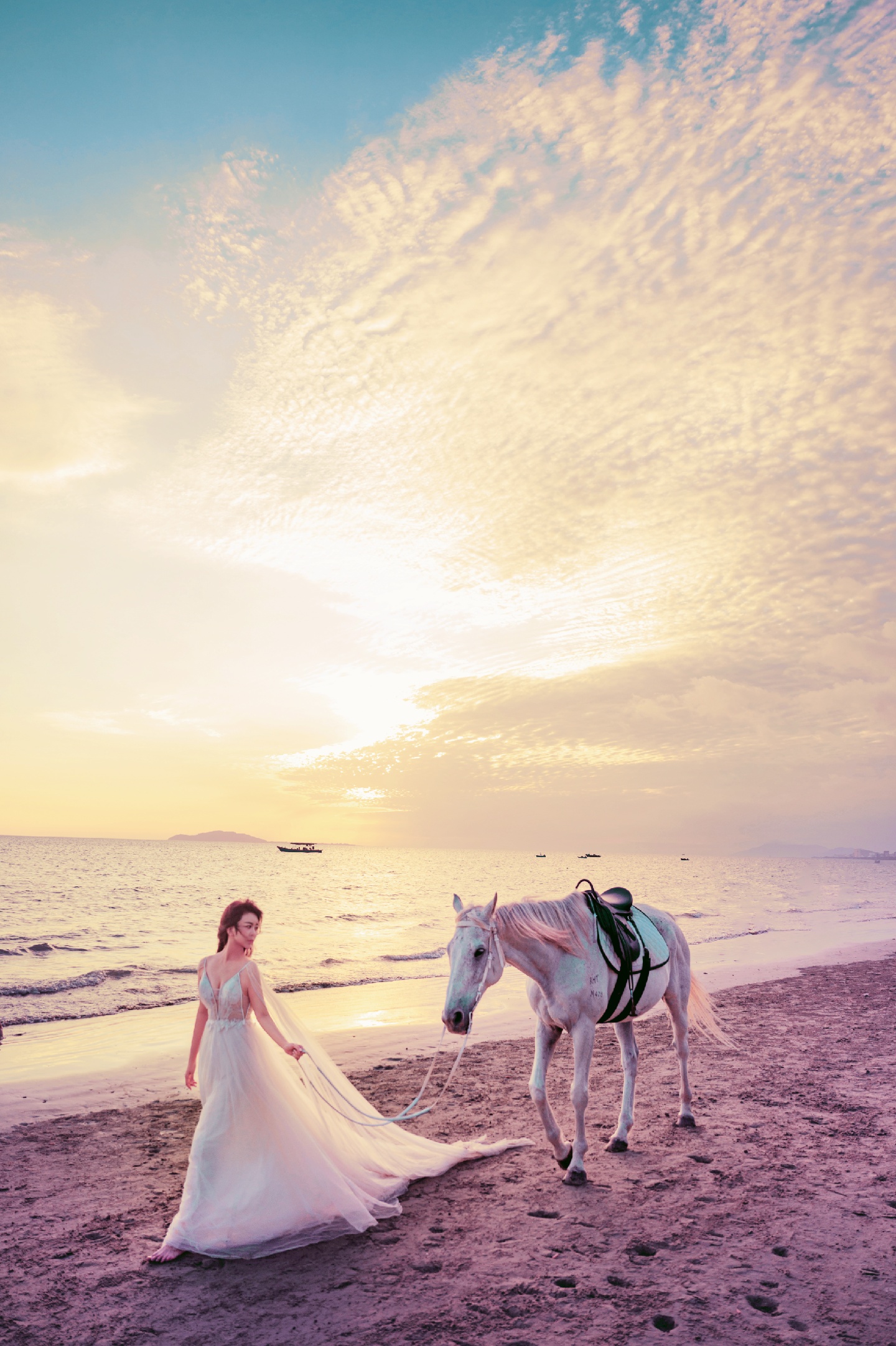 分分钟刷爆朋友圈!夕阳🌇海边🌊白马🐎