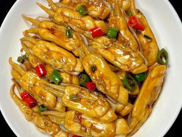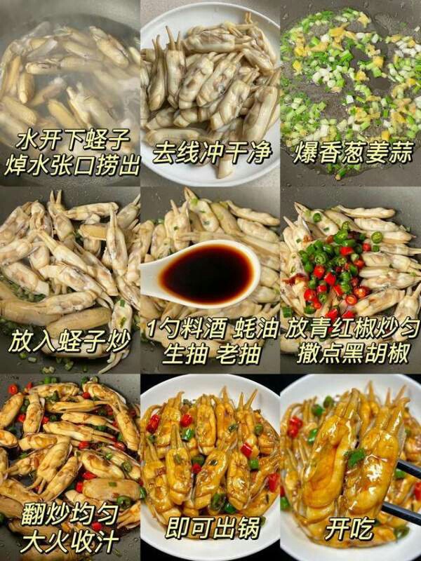 主要食材:蛏子,姜葱蒜,料酒,生抽,老抽,蚝油,黑胡椒粉,青红辣椒,香辣过瘾,让人的味蕾瞬间就打开了,恰到好处的微辣,让人食欲大增,鲜美的蛏子酱香浓郁,特别解馋。