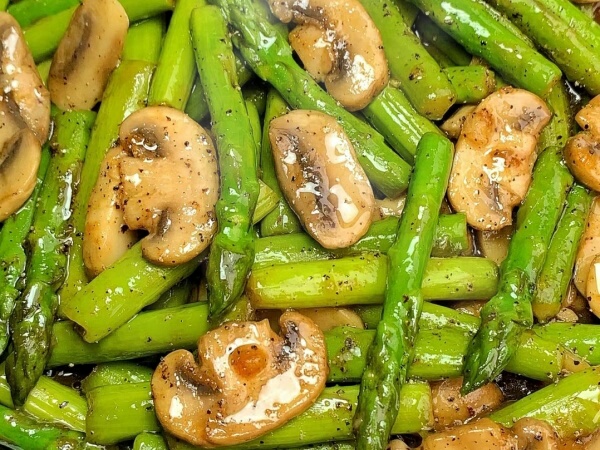准备食材:芦笋,口蘑,黑胡椒粉,蒜末。