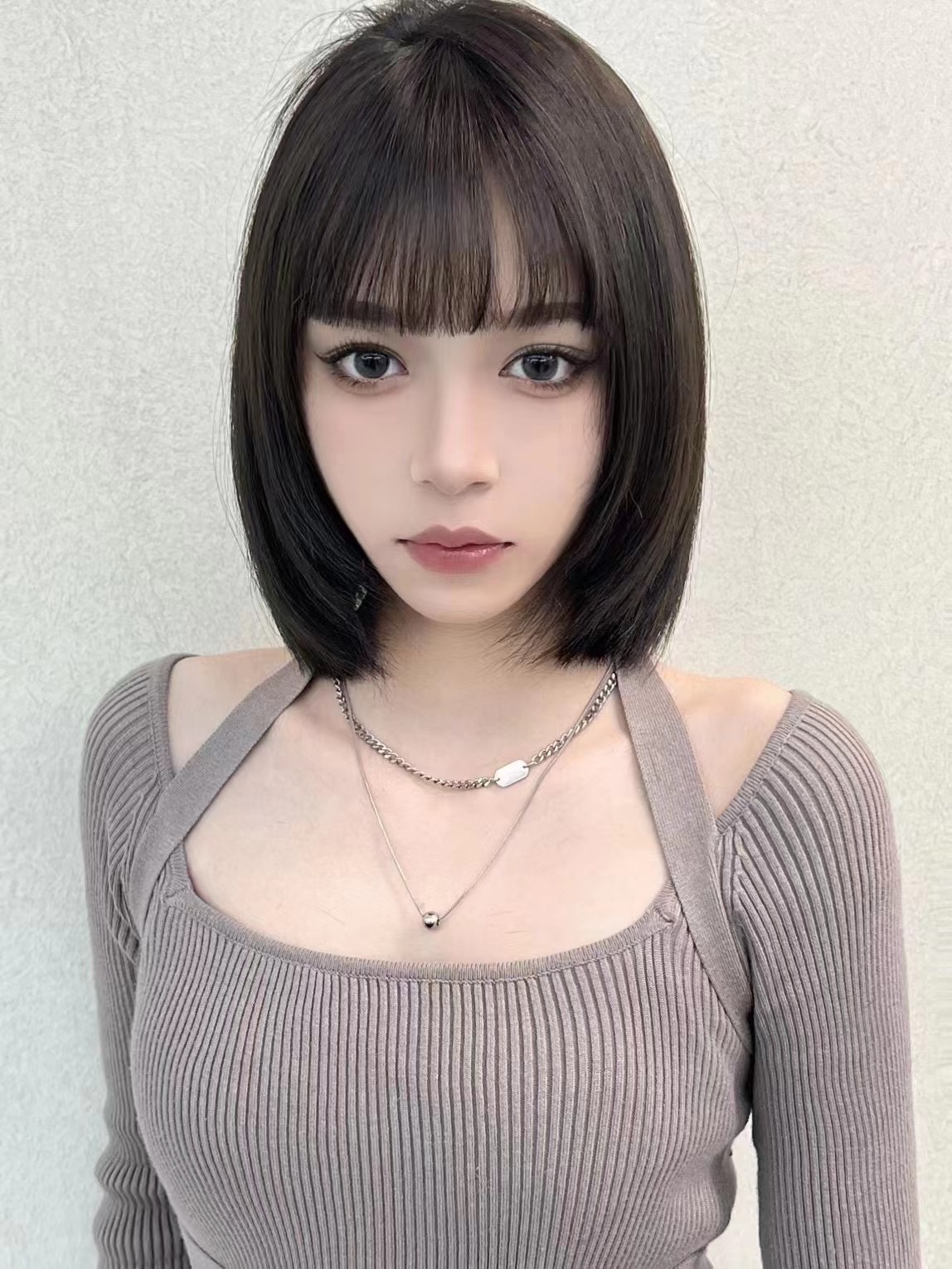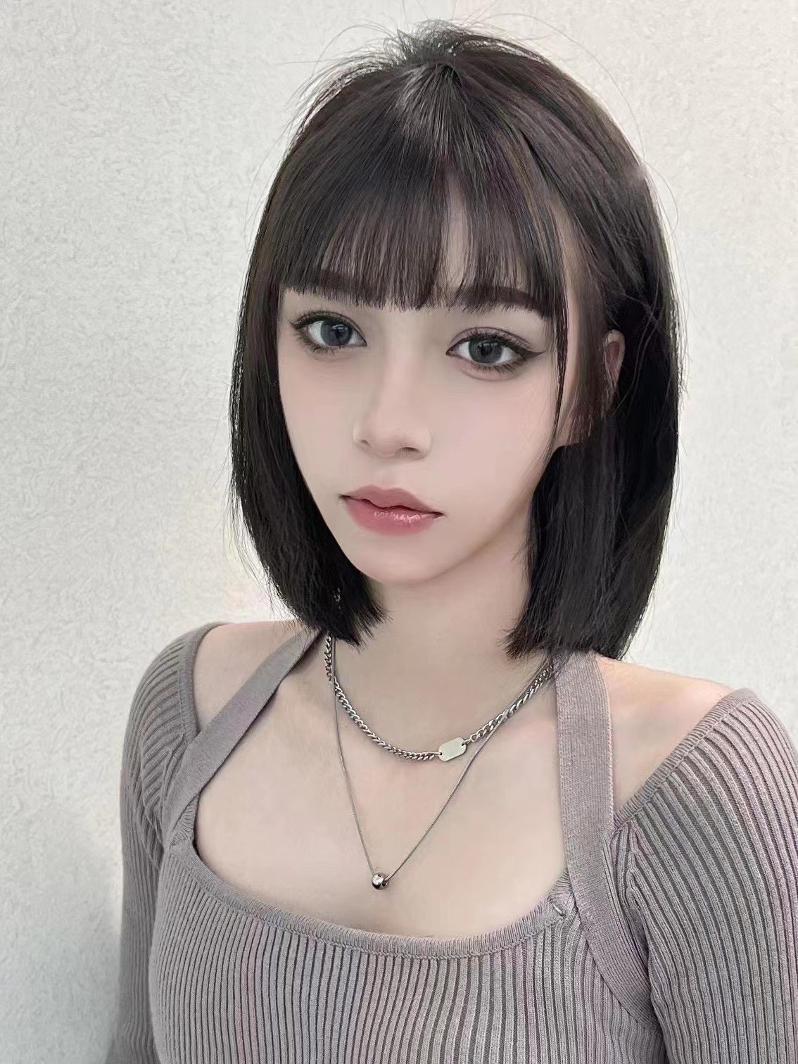 今天是一款齐肩短发,发型设计长度肩膀刚刚好的感觉,设计发型修饰脖子,微层次,刘海搭配漫画刘海,刘海长度眉毛以下,睫毛以上,整体比较有协调感,凸显发型简单高级,自然吹干即可。