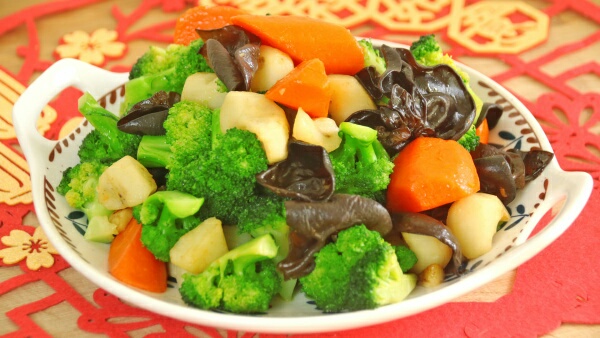 食材:荸荠、西兰花、胡萝卜、木耳