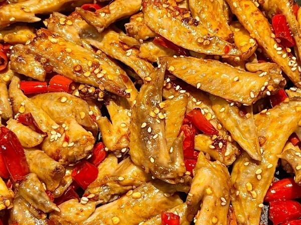 准备食材:鸡翅尖,干辣椒,姜片,蒜末,豆瓣酱,白芝麻。