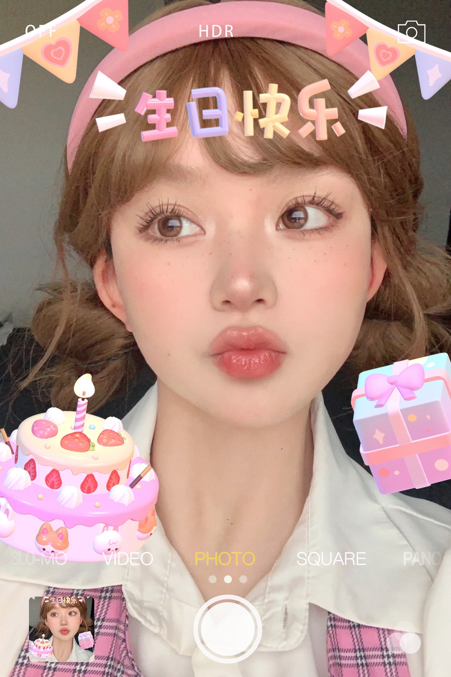 可爱3D生日快乐贴贴|日常人像自拍|原相机取景器模版-美图社区-美图秀秀