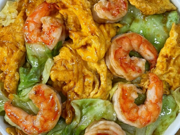 鸡蛋包菜炒虾仁