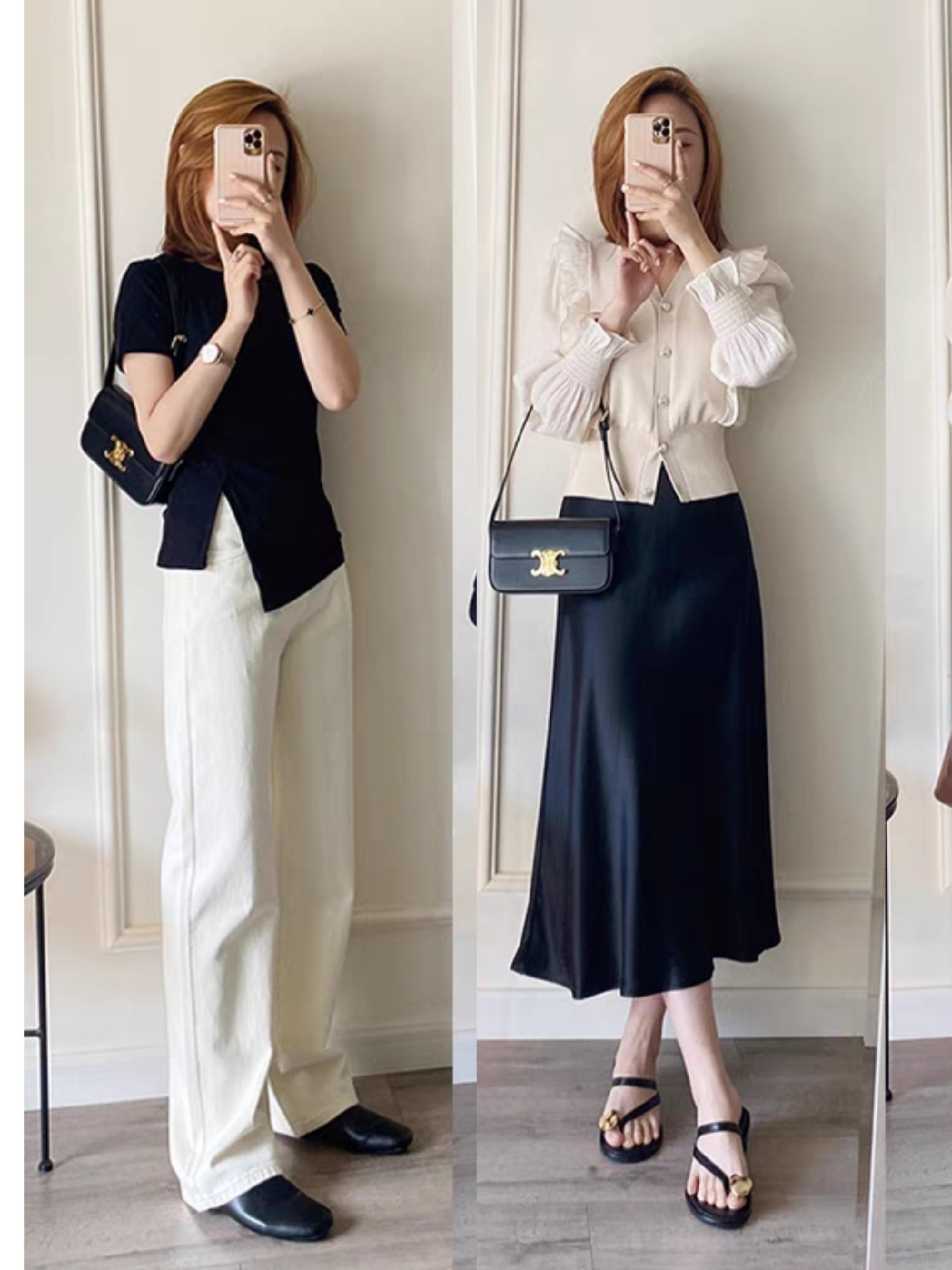 穿搭技巧六、女生穿黑色系是真的很显瘦,上衣穿修身型的显瘦效果会更好,如果是粗腿的女生,穿小黑裤,或者黑色打底裤最适合的。