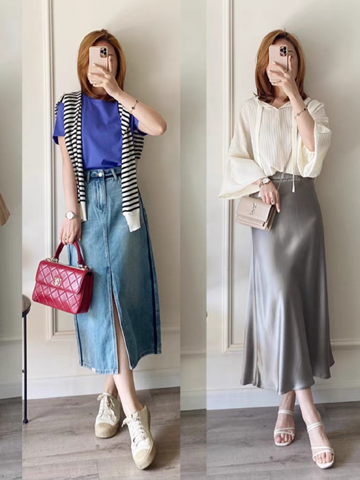 穿搭技巧三、女生想要穿搭的温柔甜美风可以这样搭配:A 字裙搭配一件打底衫加一件中外套搭配中筒袜、一双帆布鞋。