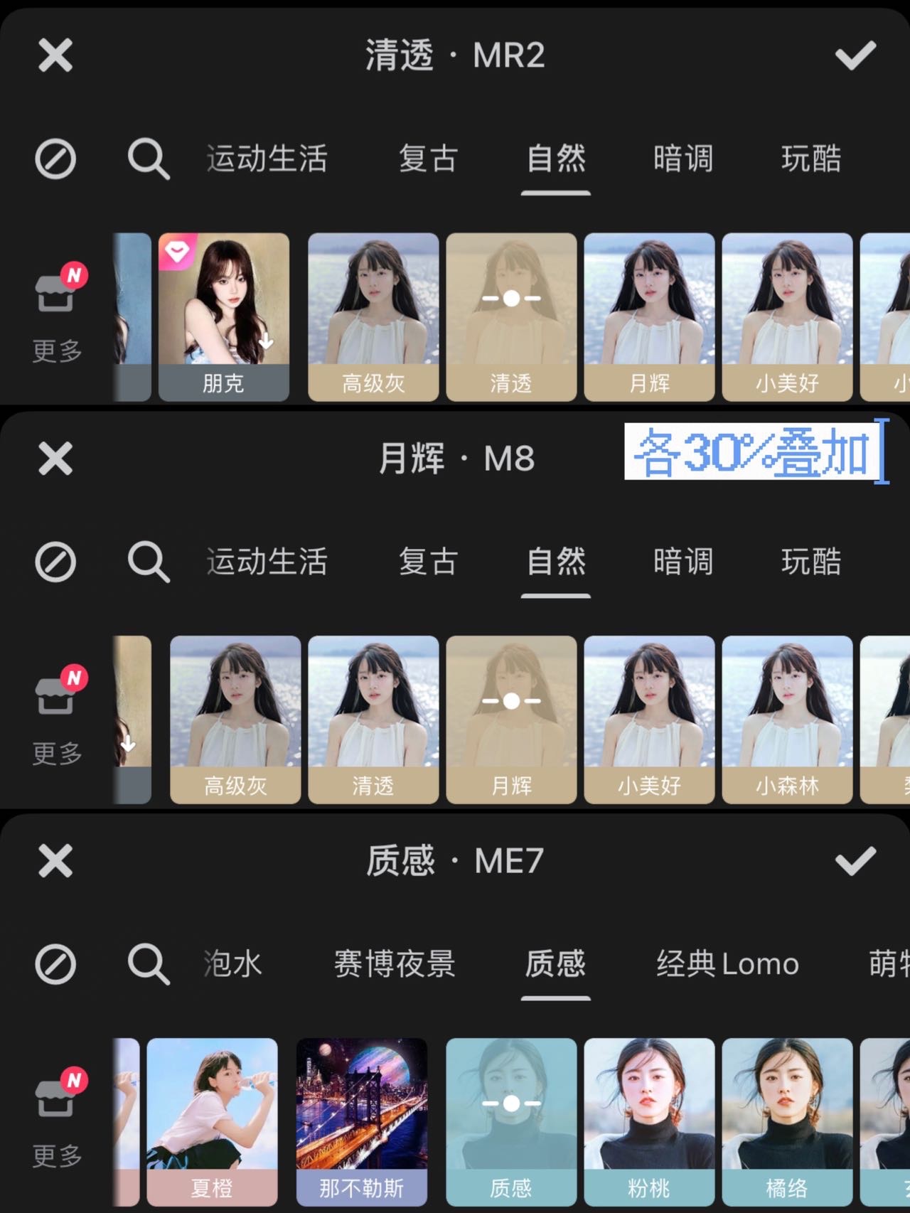 发现一组很奶油肌的滤镜,米兔咻咻自然里面的清透和月辉加上质感,各➕30叠加使用!感觉用这个滤镜就没有不好看的照片,很自然的妈生好皮系列