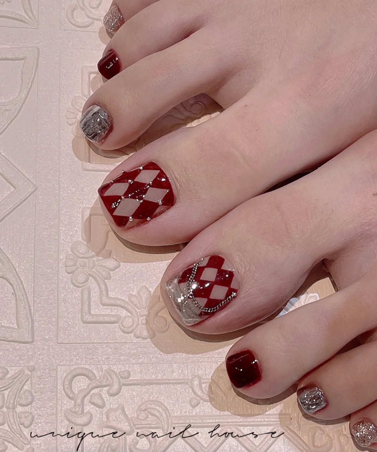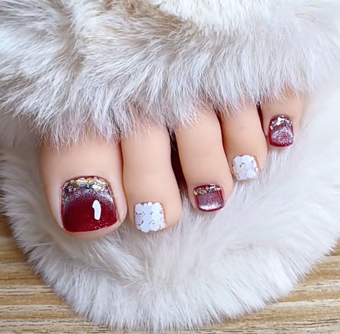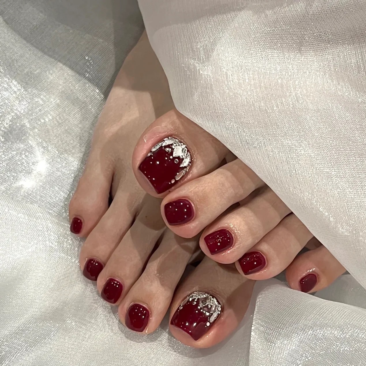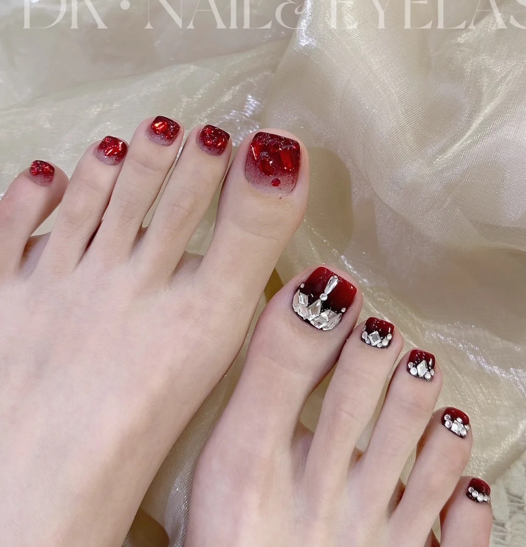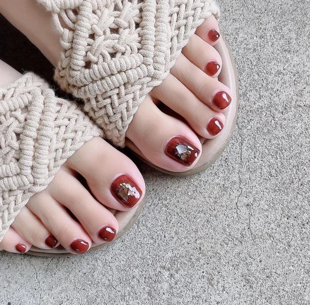 本命年红色脚趾甲美甲系列,超级无敌显白,显气质。骨感的脚做出来美,靓,白