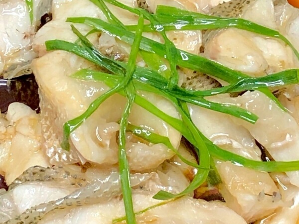 3、蒸好的鲈鱼铺上葱丝,淋上料汁,最后浇上热油激发出香味即可上桌开吃。