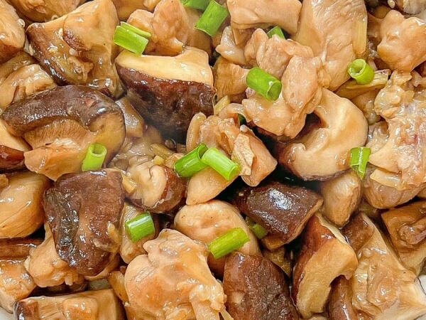 准备食材:鸡腿,鲜香菇,姜丝,蒜末,白芝麻。