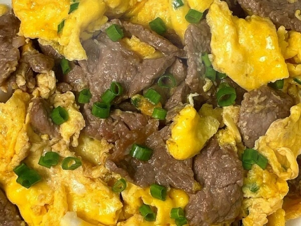 1、牛肉清洗干净切成片,加入淀粉、生抽、料酒,抓拌均匀腌制十分钟。鸡蛋打入碗中,放入葱花和少许食盐,搅散备用。