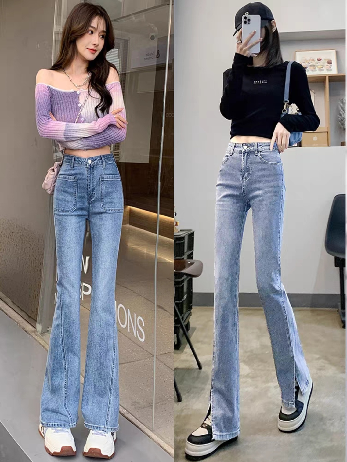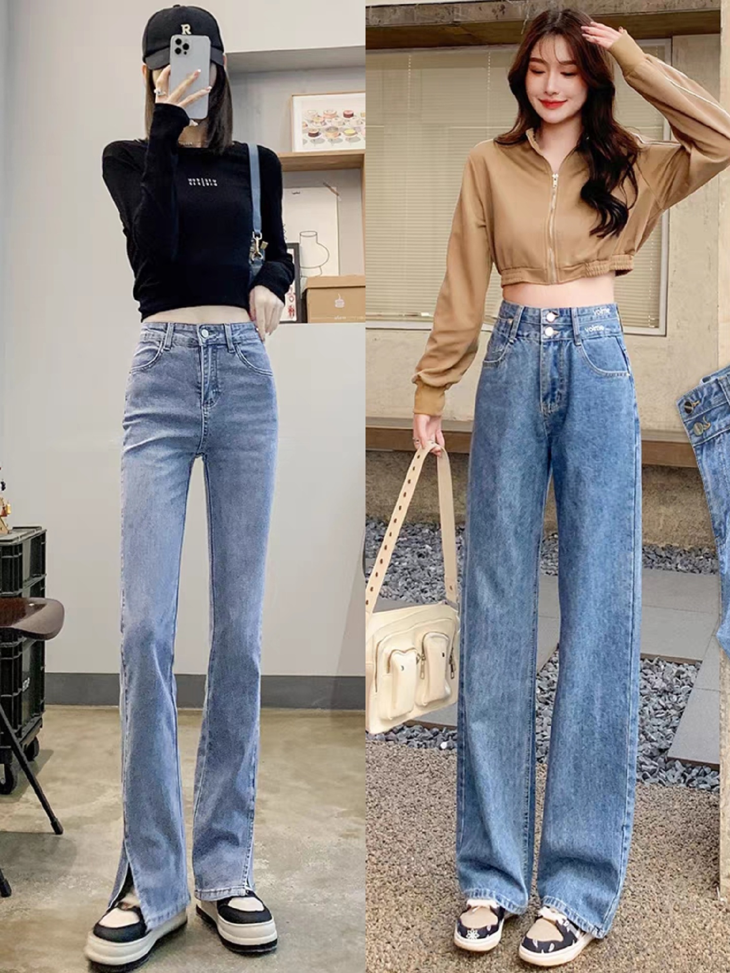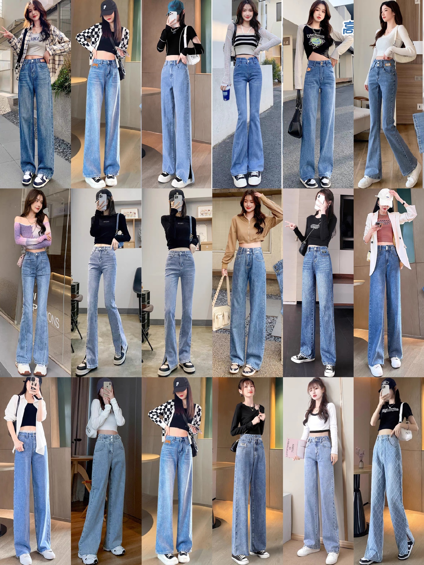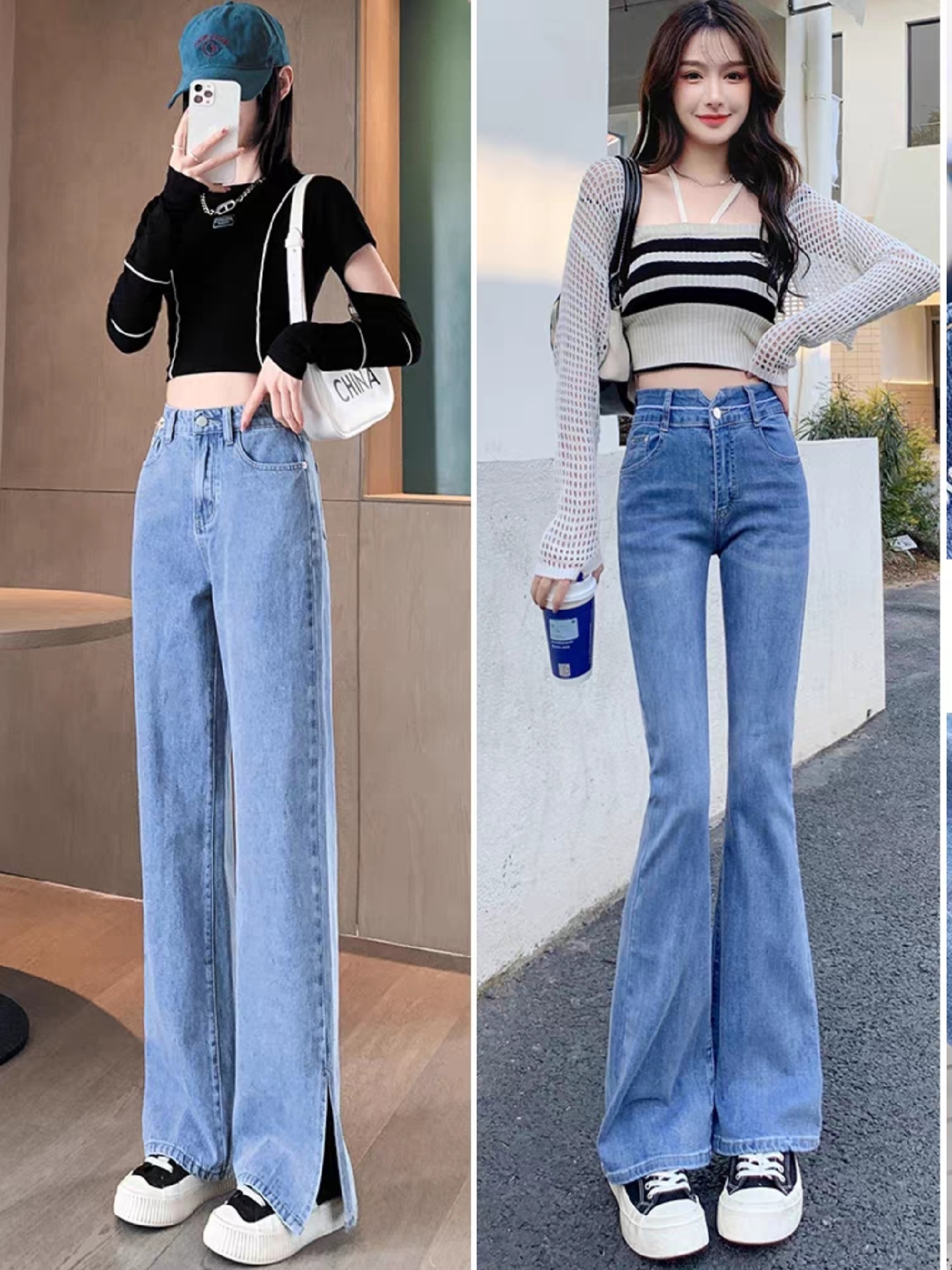 女生牛仔裤是日常不过了,几乎每季节都不离不开牛仔裤穿搭身影,但每到换季的时候,我们的衣柜都要不停地更新,西装、风衣、阔腿裤,还有短裤、裙装、等等单品让我们感到眼花缭乱,女生还是来看看阔腿牛仔裤,开叉牛仔裤,直筒牛仔裤、都很好搭配上衣,如图:搭配黑色长袖短款上衣,在搭配一件格子衬衫外套,非常时尚,搭配粉色 T恤搭配一件白色西装外套整体显的时尚潮流。搭配方字领针织衫露出锁骨知性又时髦。