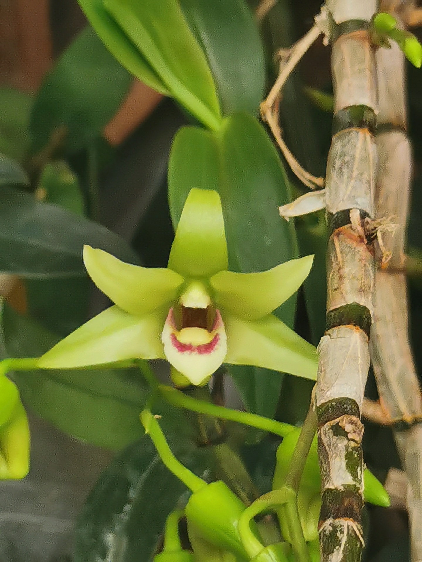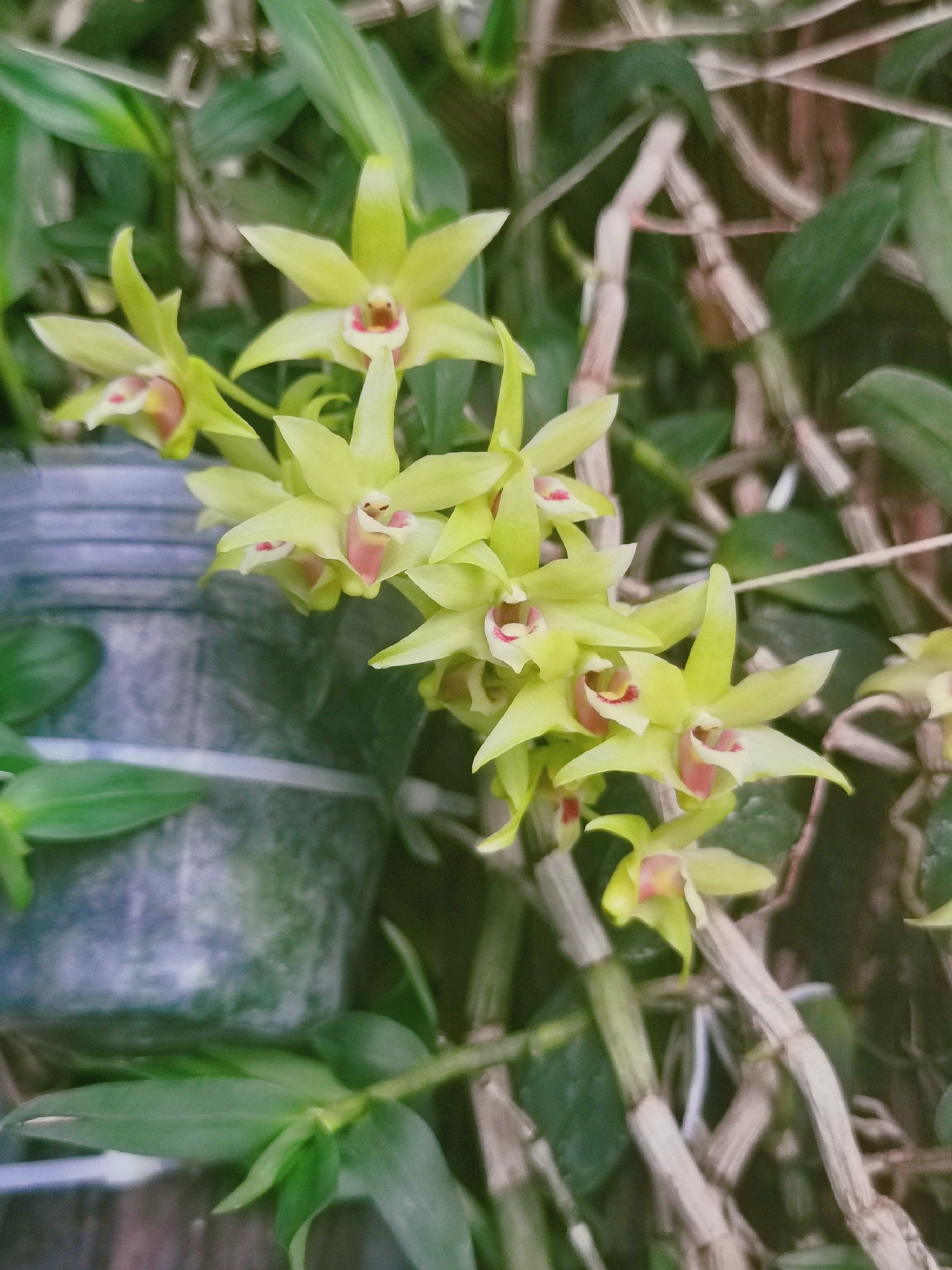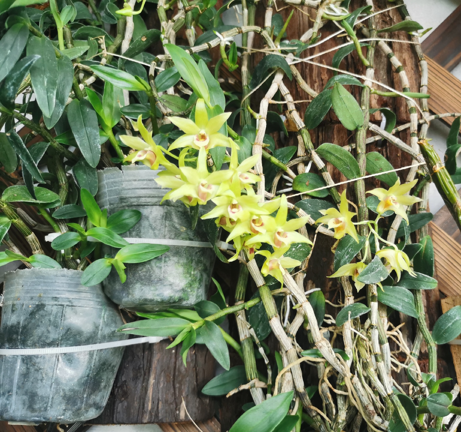 铁皮石斛是一个即可以食用又可以赏花的植物。它有很高的药用价值,且有很高的观赏价值,它的花与兰花有些相似,花朵颜色为黄色、橙色,花瓣上还有如丝绒的质地,观赏价值较高。铁皮石斛是勤花的兰科植物,开花季是3~6月。