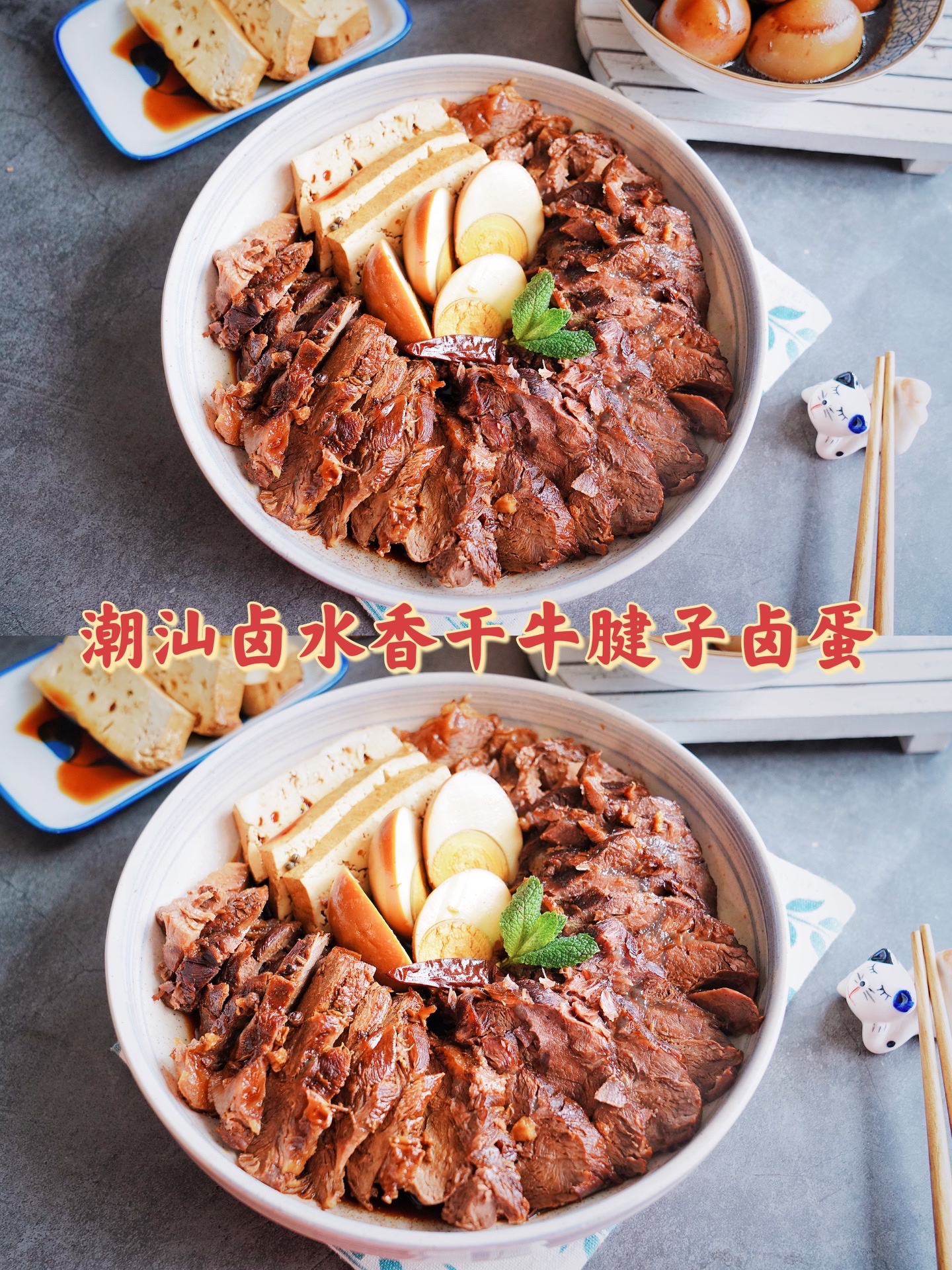 潮汕极具特色的美食之一是卤水,卤水鸭、卤水鹅、卤水猪肉等。但是今天我要给大家分享的不是传统的卤味,而是用牛腱子改良的潮汕卤味。潮汕卤味往往都是和鸡蛋和豆干一起卤的,一般卤的是五花肉或是猪头肉的比较多,就没有卤牛肉的。