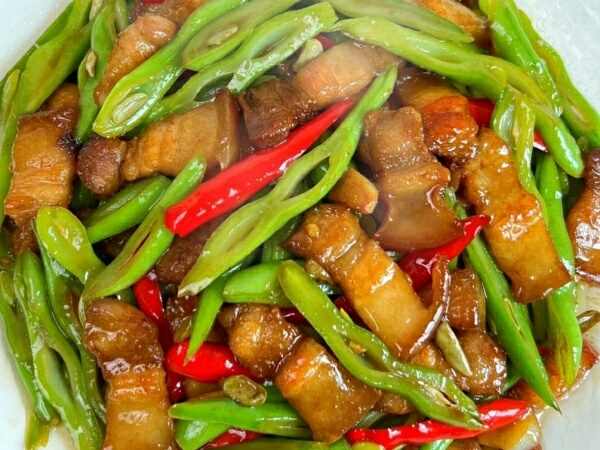 食材准备:四季豆、五花肉、蒜末、小米辣、胡椒粉。