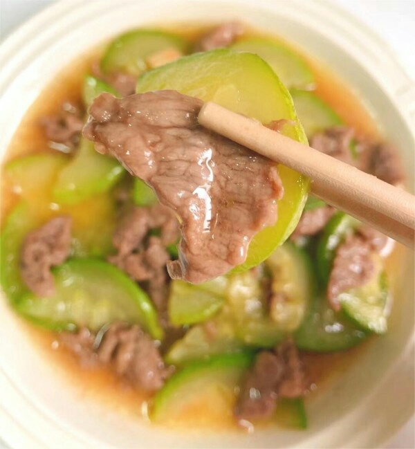 步骤一:西葫芦洗净以后一分为二,切成薄片备用。牛肉先切成薄片,加一点酱油、玉米淀粉,抓拌均匀,再加一点点油,锁住水分,腌制20分钟。