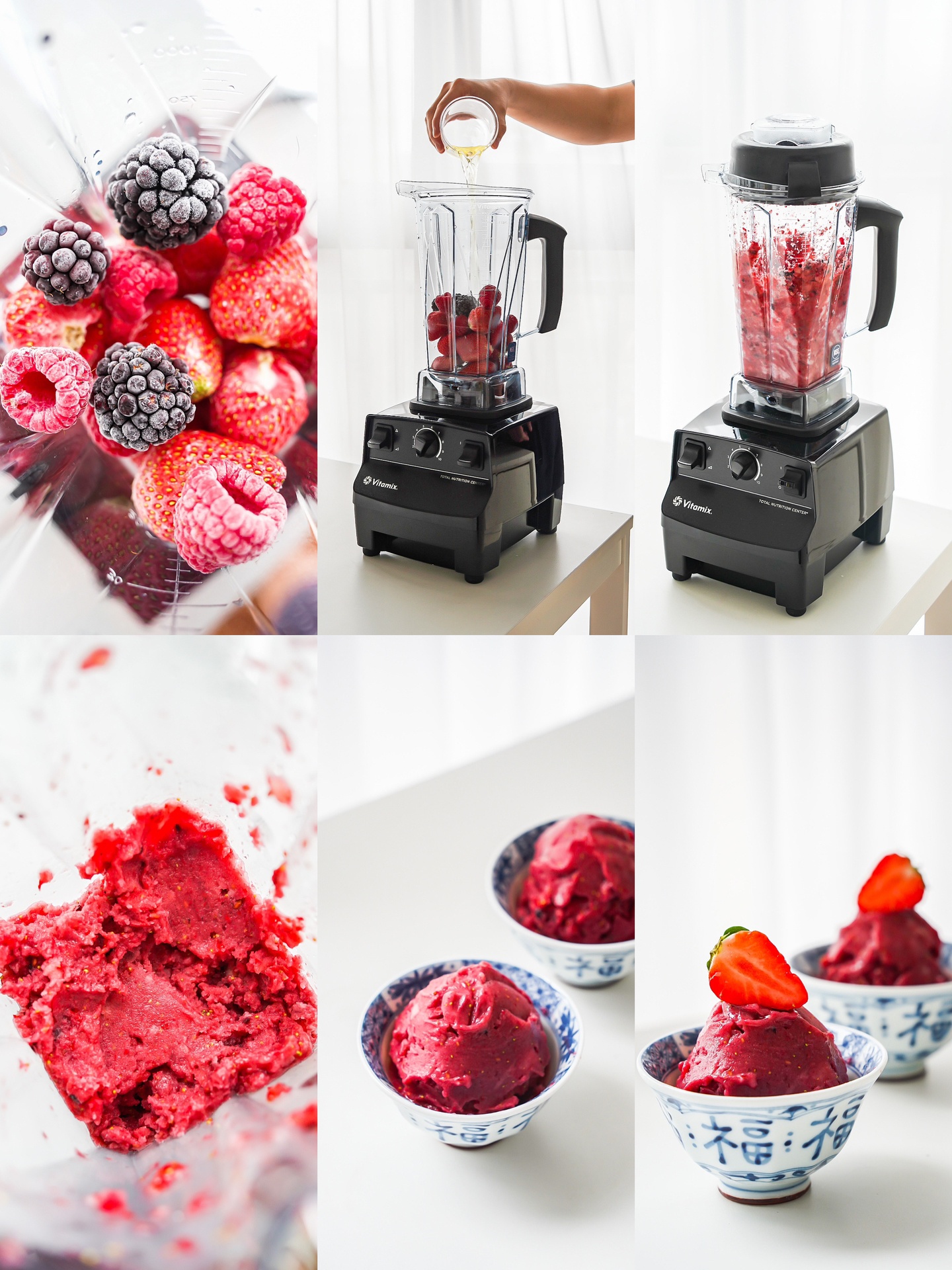 把🍓冷冻水果和🫗少量的液体倒入破壁机