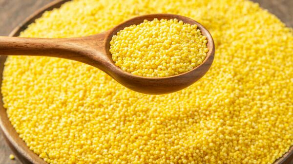 3、起锅烧水,水开下小米,中火勤搅动,不要粘底。水全开了转小火撇去浮沫。