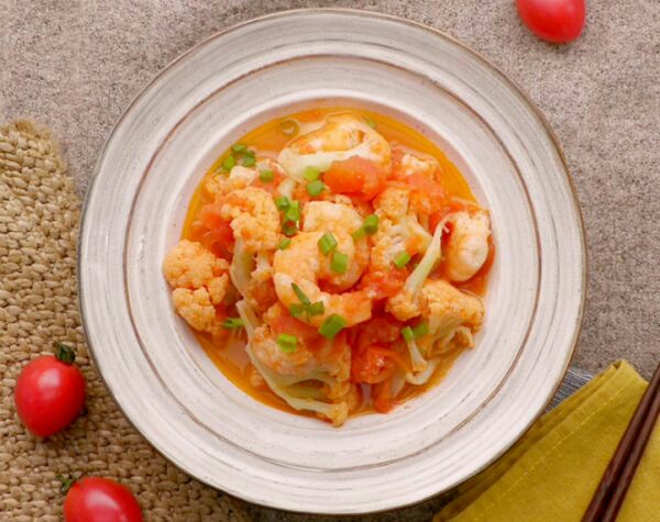 番茄虾仁炒花菜
