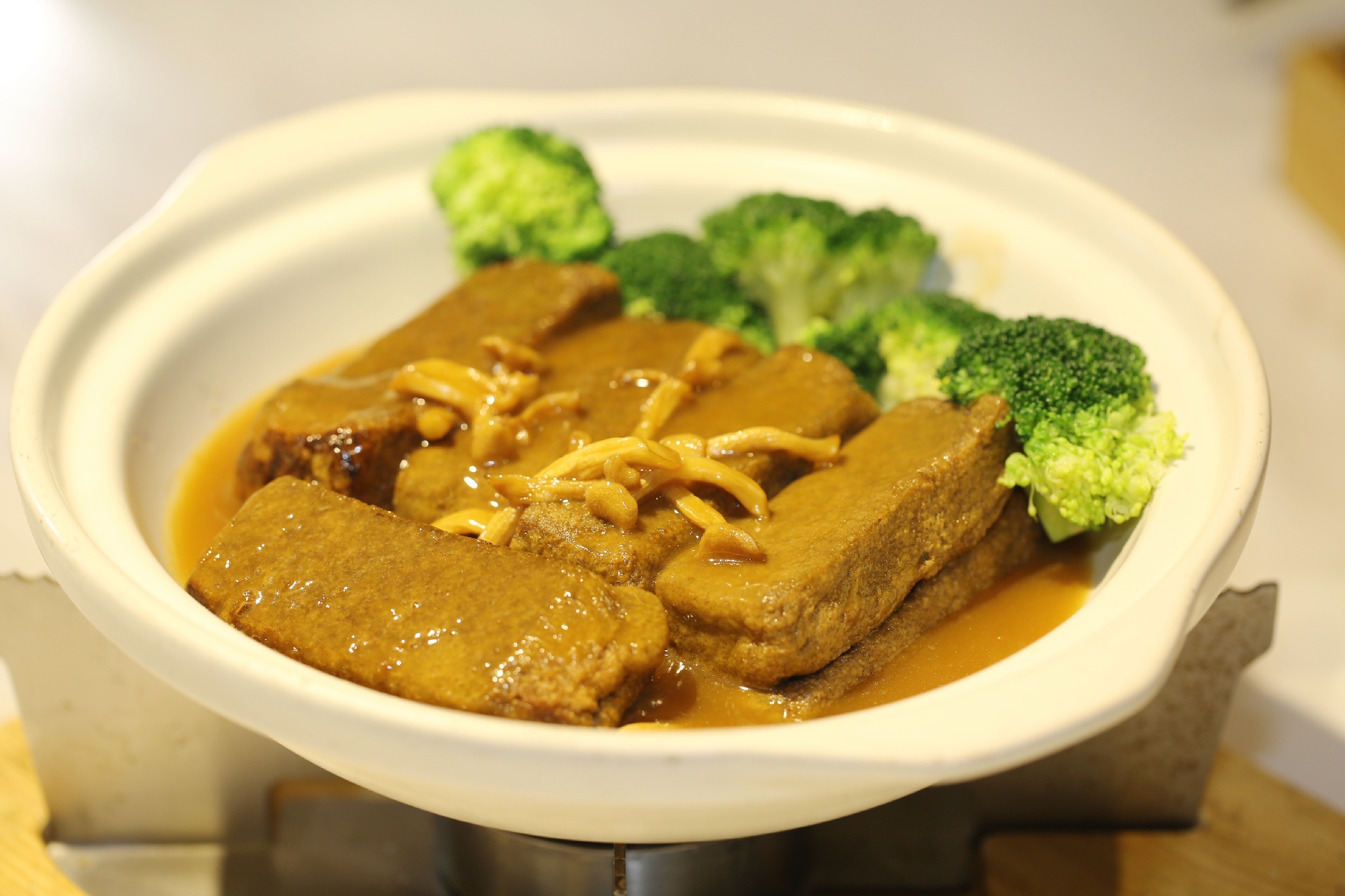 黑豆腐豆香浓郁,嫩滑可口,配上菌菇和西兰花,健康又营养。