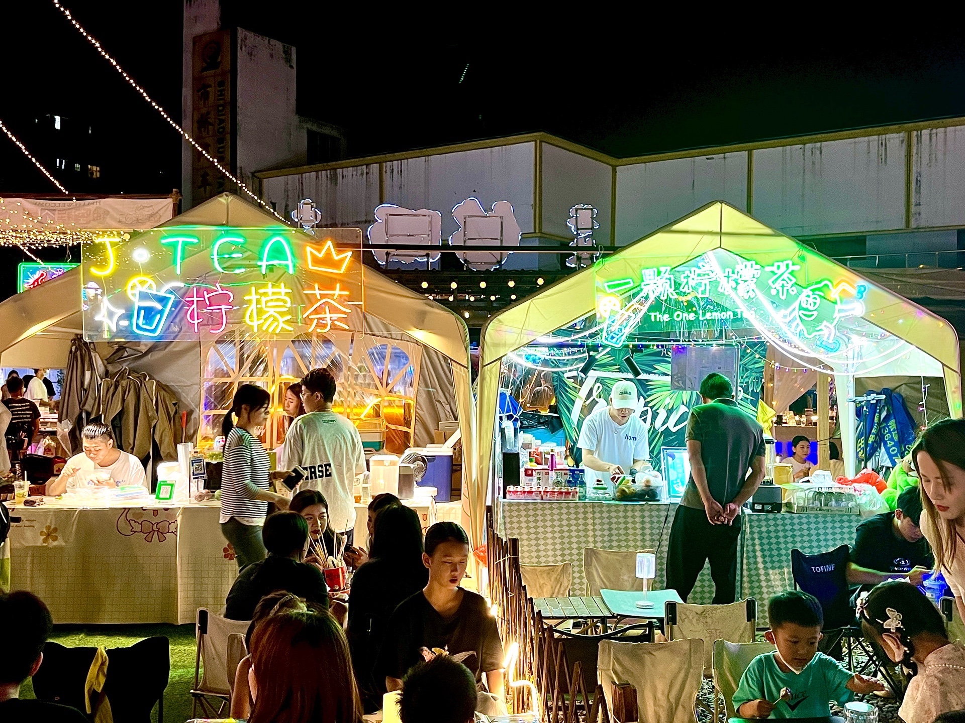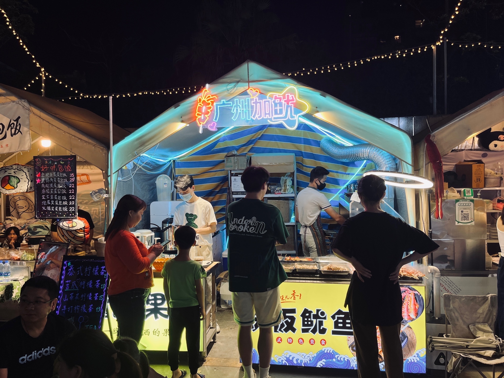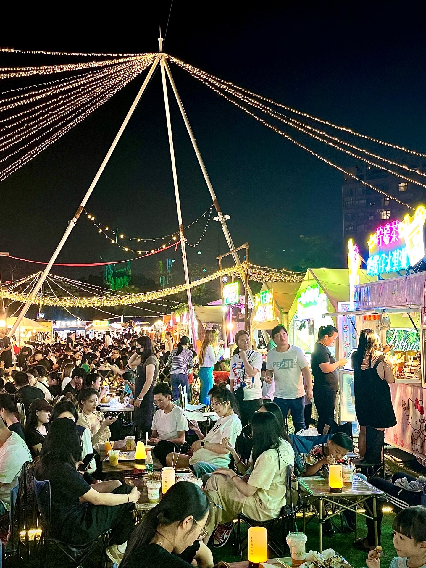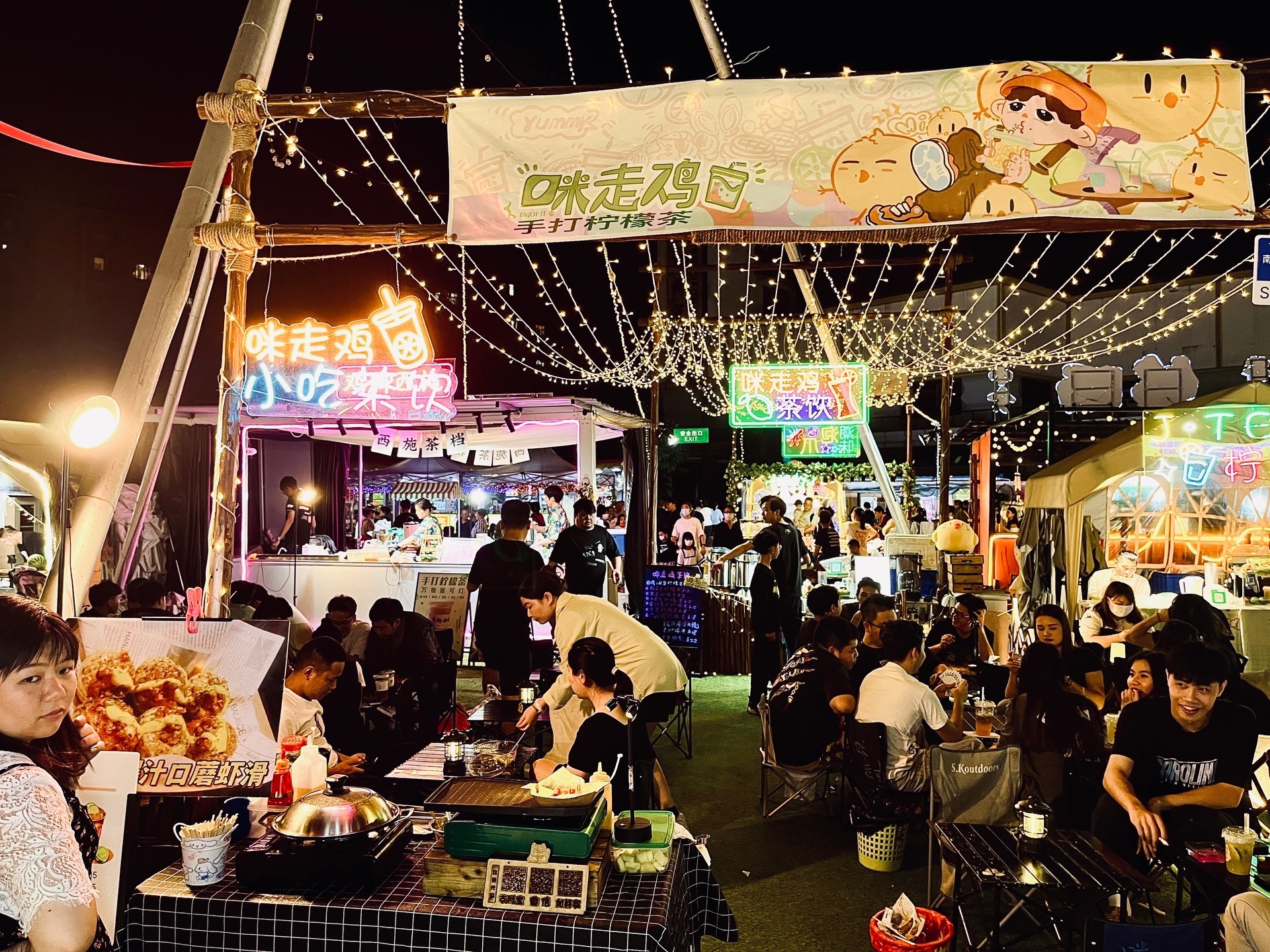 夜幕降临,地处番禺区东环路与市广路相交地块的“市桥站营地”,灯火通明,人山人海,美食飘香。夜经济恢复活力,重拾人间烟火!