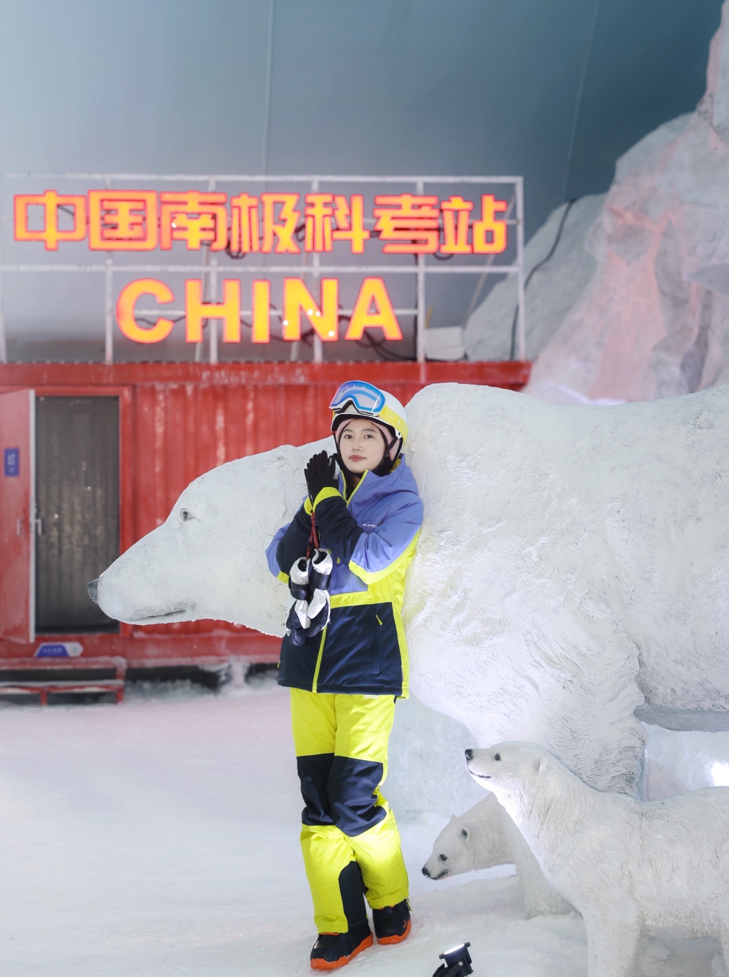 坐着魔毯上到坡顶,惊喜滴发现顶上还有好几处打卡拍照点,逼真的北极熊🐻❄️跟小企鹅🐧,还有一个极地风暴馆可以拍出冰雪世界的感觉!