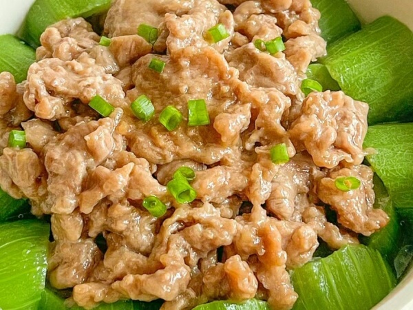 3、将肉末均匀铺在冬瓜上,水开上锅蒸20分钟左右。蒸熟就可以直接出锅,撒上葱花即可上桌开吃。