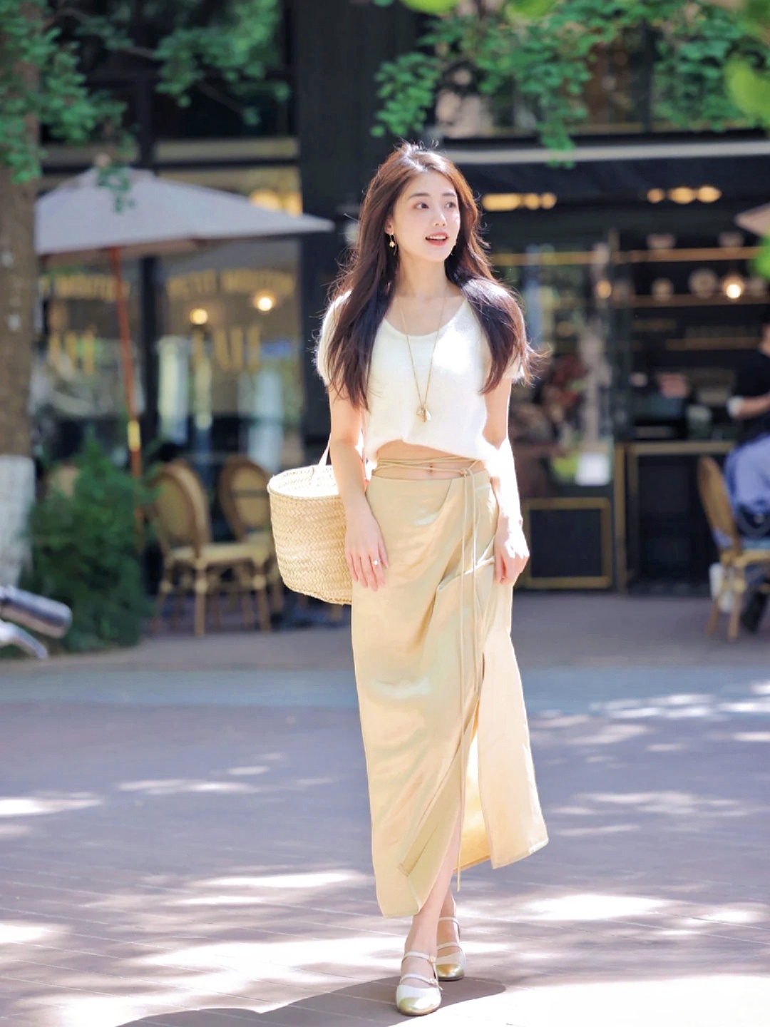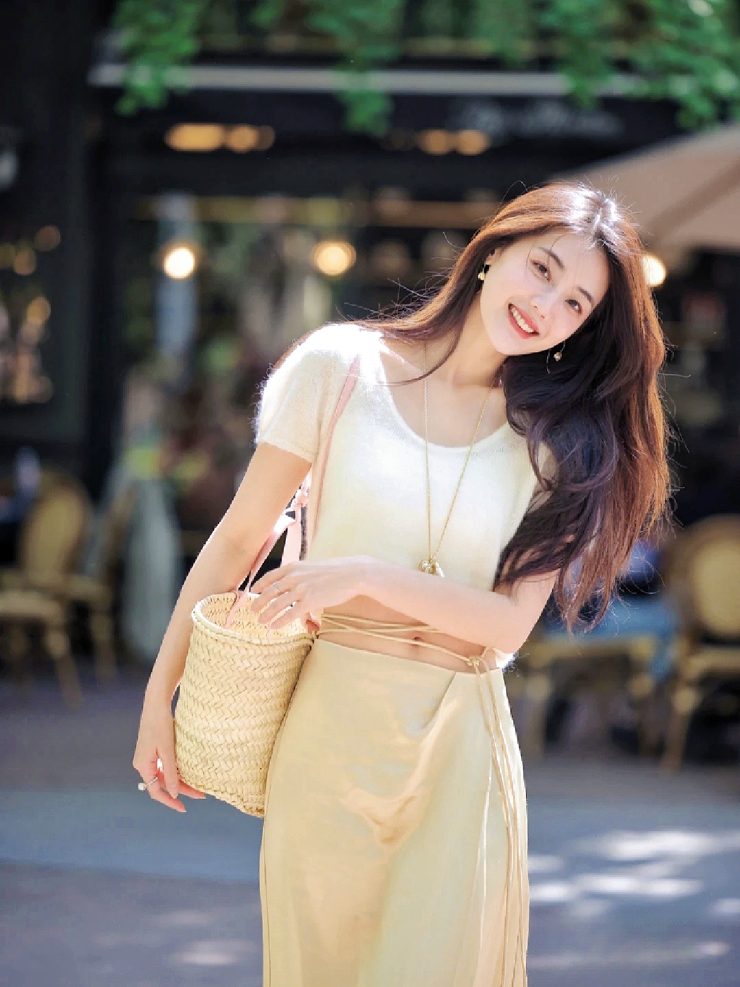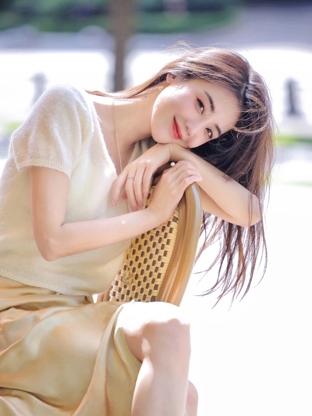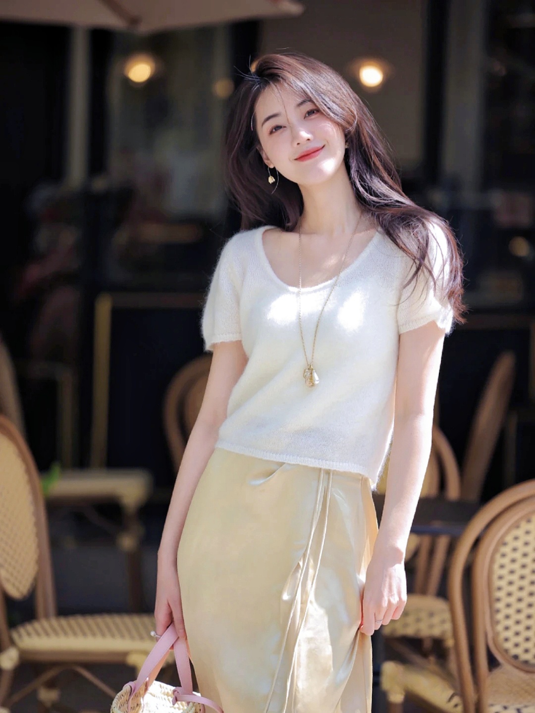 白色短袖针织衫也是的很适合夏天啦,气质就不用多说了~衣服的面料触感冰肤 即使在夏天也不会觉得很闷热的,搭配小长裙 真的是自带温柔感梨形姐妹可以冲啦!