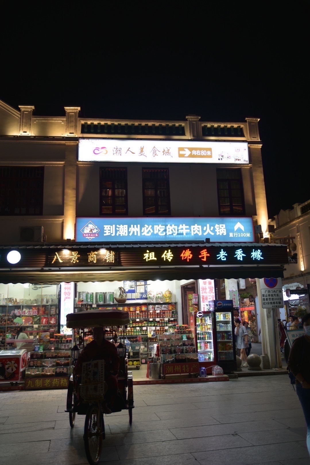 潮州牌坊街位于古城中心,是集非物质文化遗产、传统工艺、特色小吃等为一体的文化古街。牌坊街的特色建筑是矗立的22座中式明清石牌坊与两侧南洋风味的骑楼互为映衬,形成中西合璧的独特侨乡风貌。牌坊街骑楼的店铺主要围绕潮州非物质文化遗产:潮绣、手拉壶、陶瓷、工夫茶等,以及潮式美食:潮州三宝、牛肉火锅、粿条……在潮州,去一趟牌坊街,就可以了解到潮州古城的前世今生。