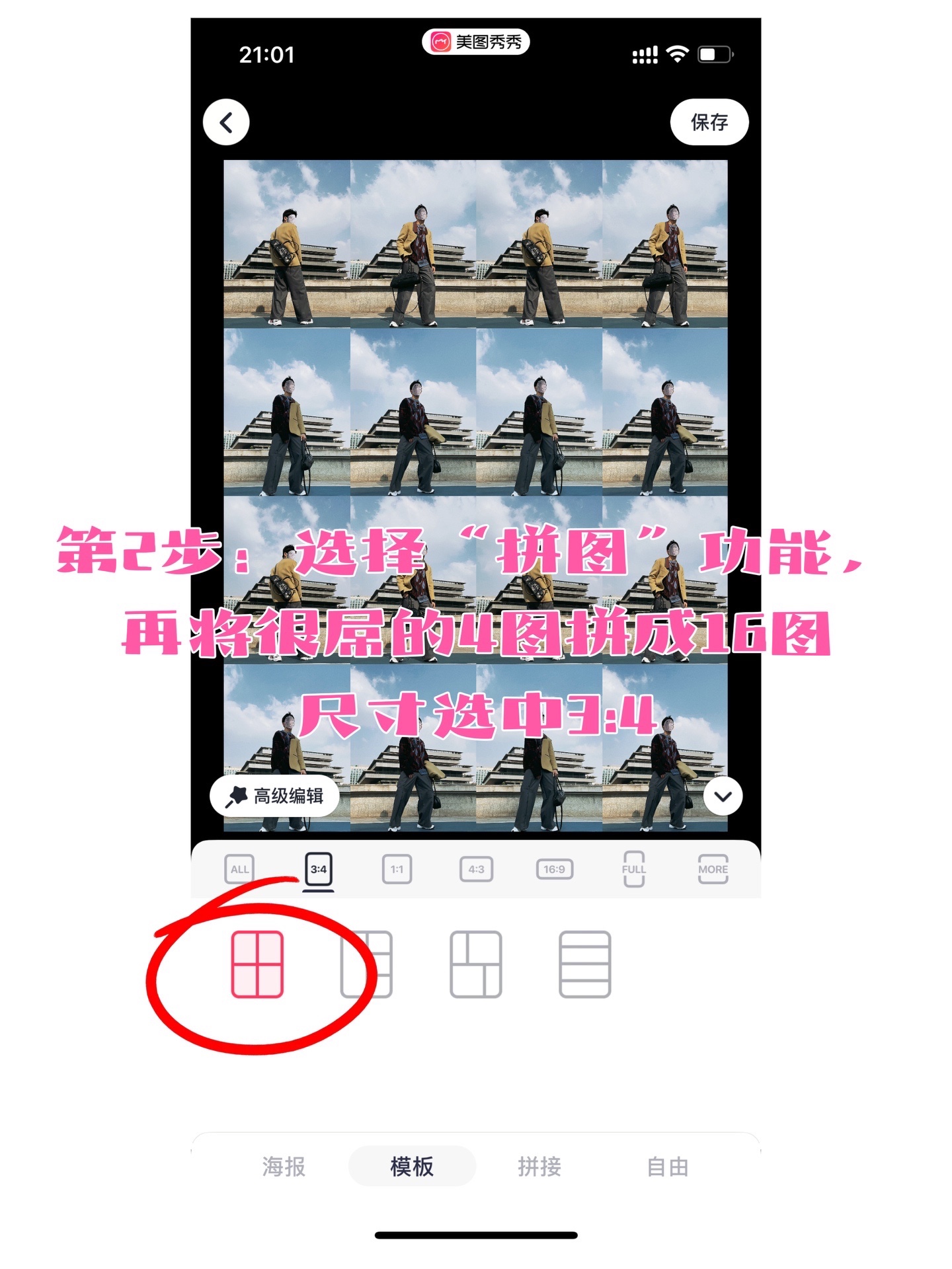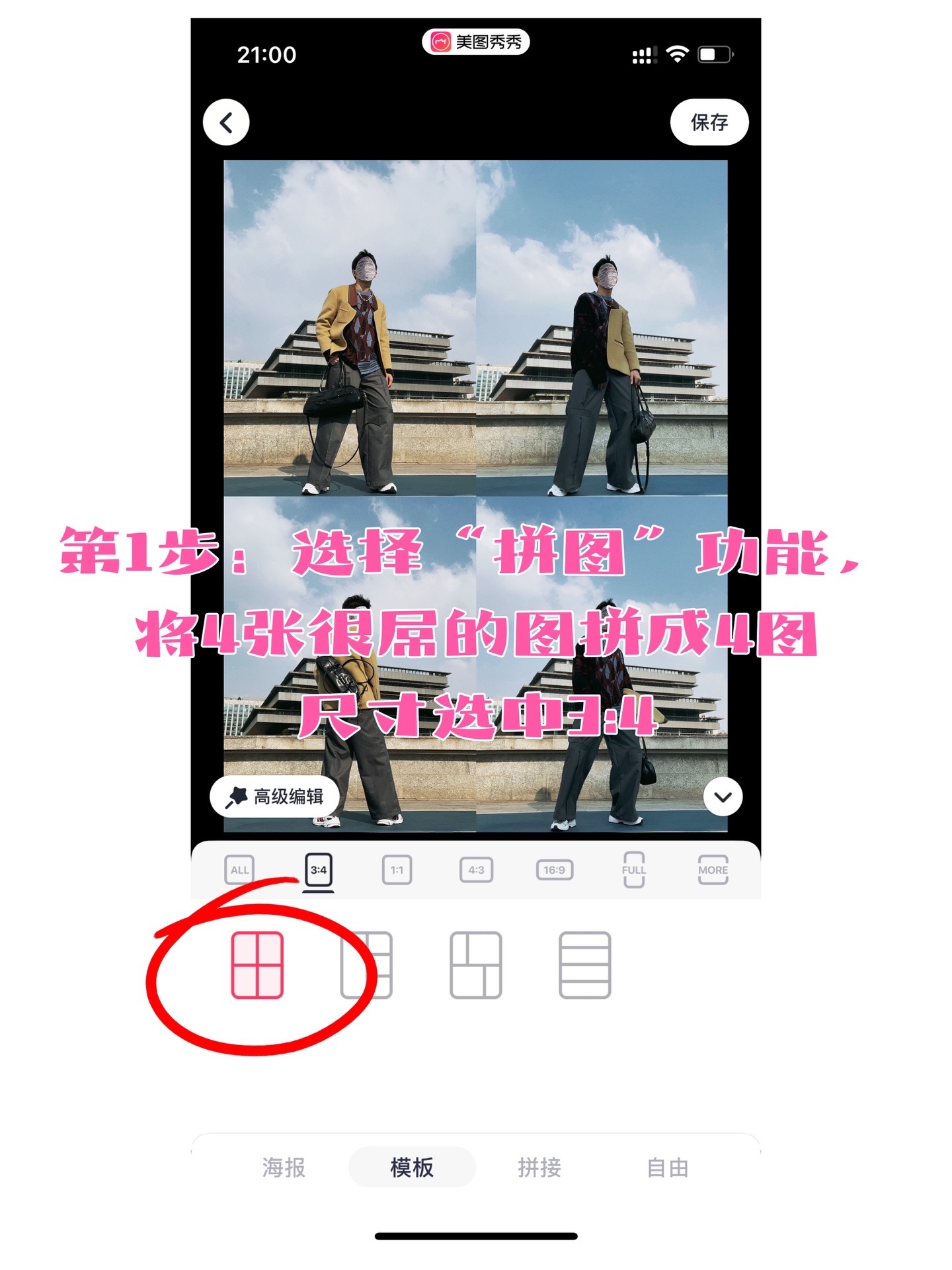 1️⃣打开MT,将4张最帅/美的照片,按3:4拼成1张图;