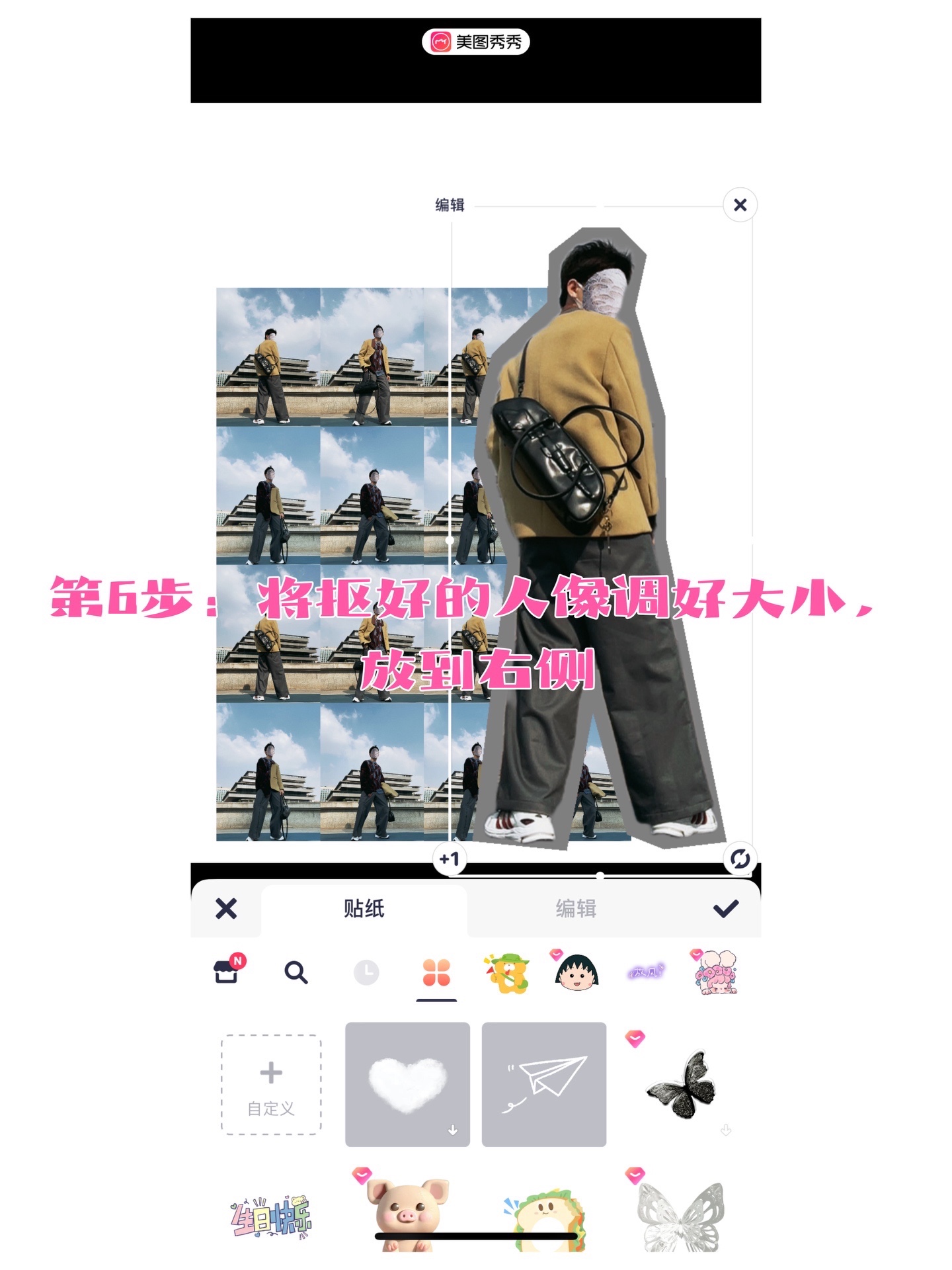 4️⃣选择“贴纸”功能,将最最帅/美的照片抠出来;