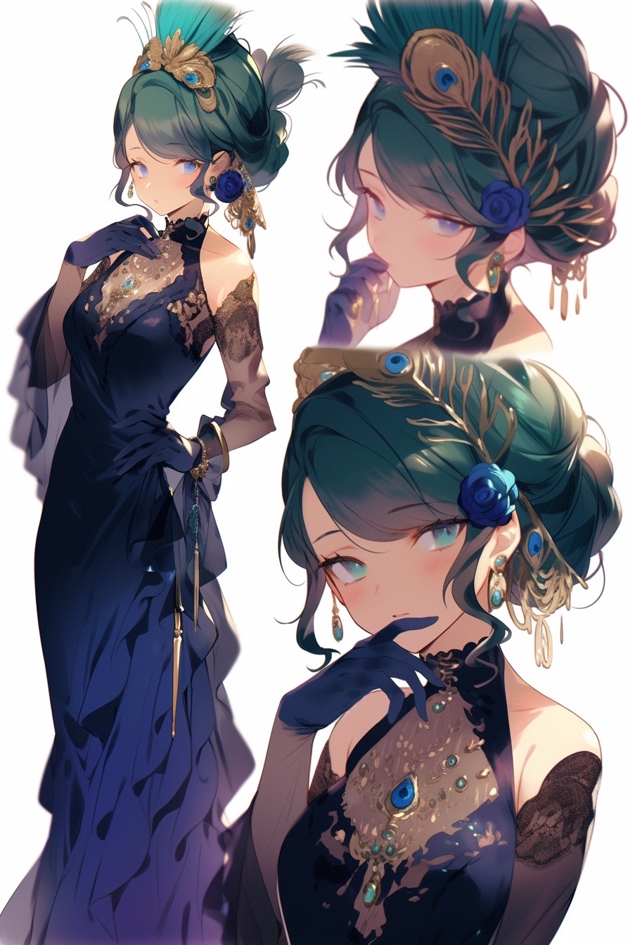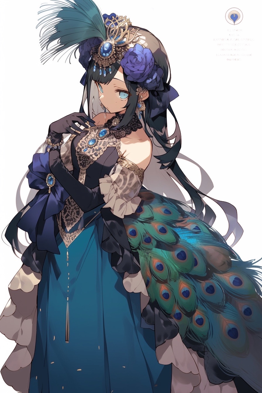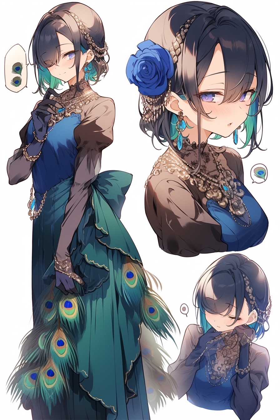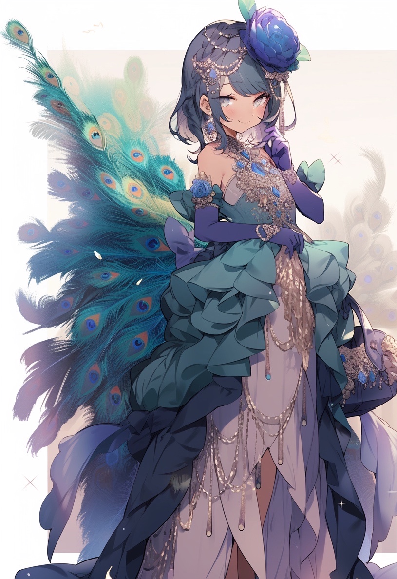 华丽的孔雀羽毛、祖母绿宝石、水晶、蓝玫瑰的组合~