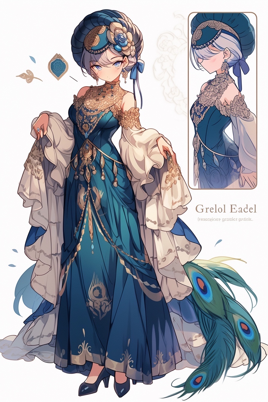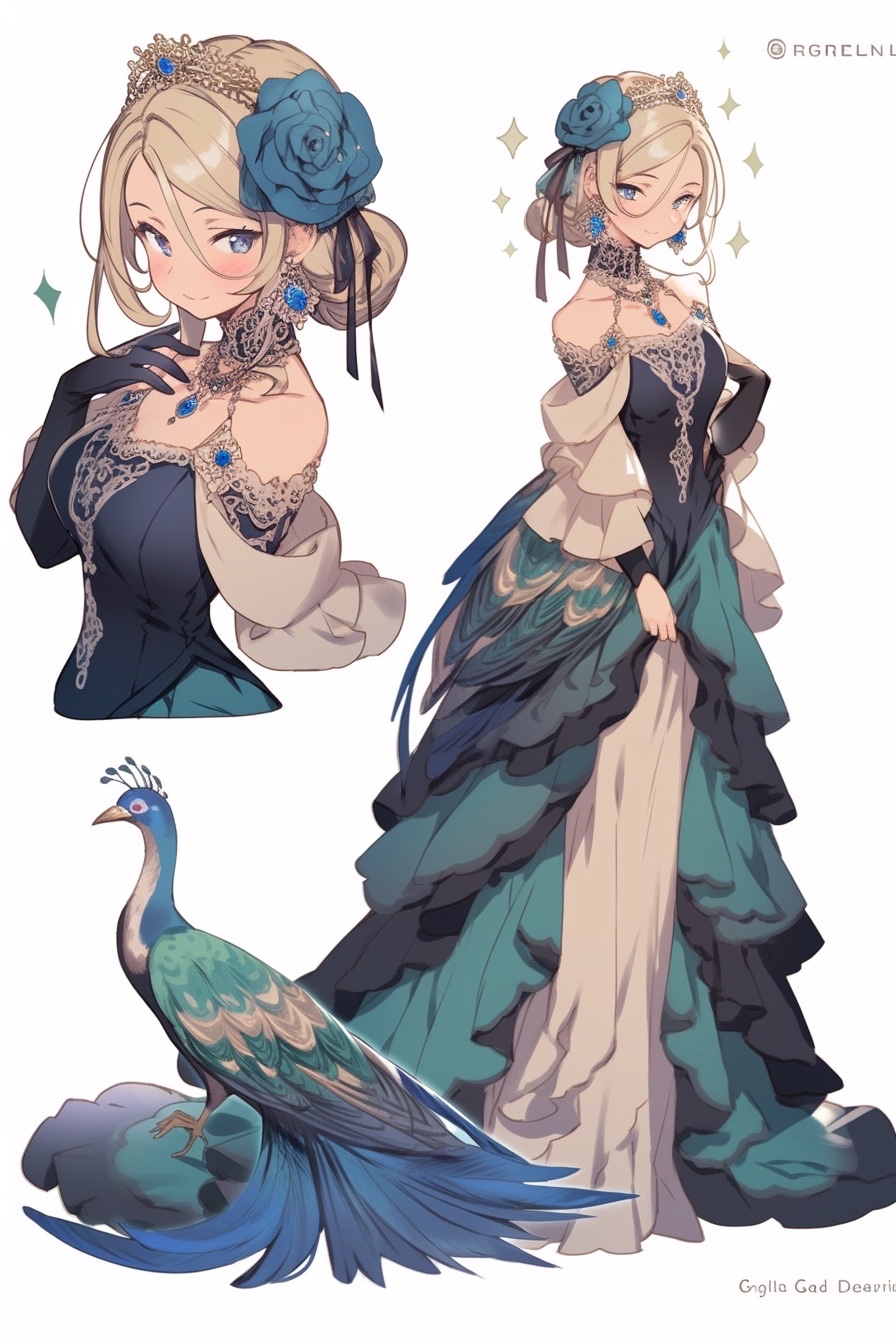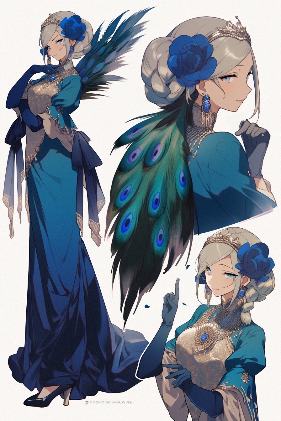 华丽的孔雀羽毛、祖母绿宝石、水晶、蓝玫瑰的组合~