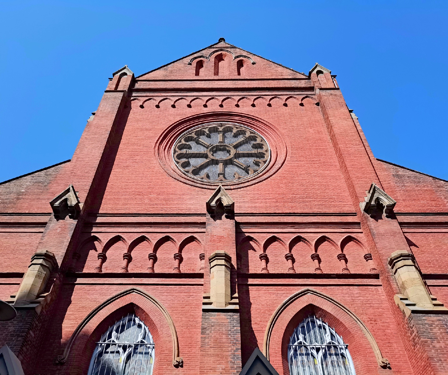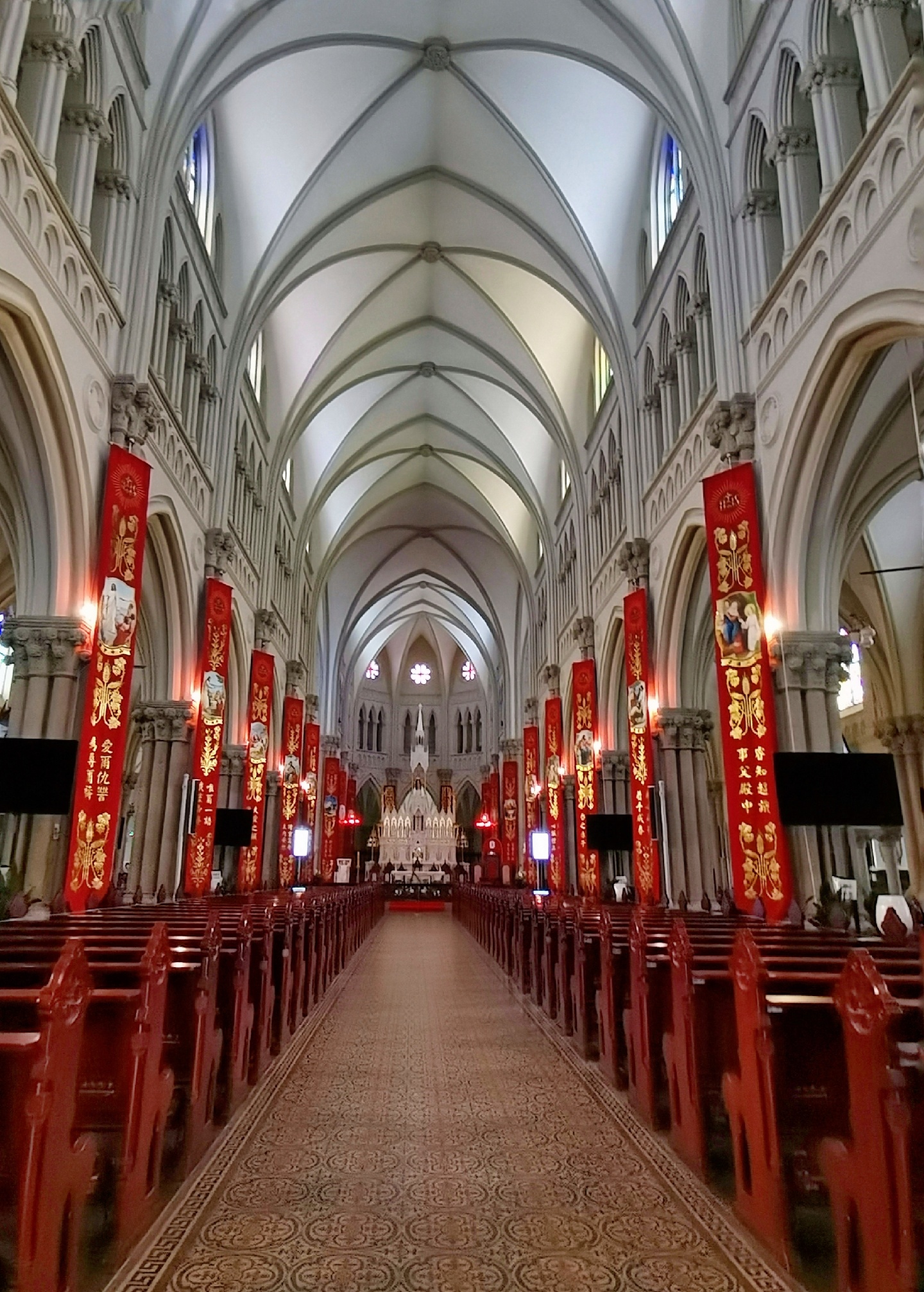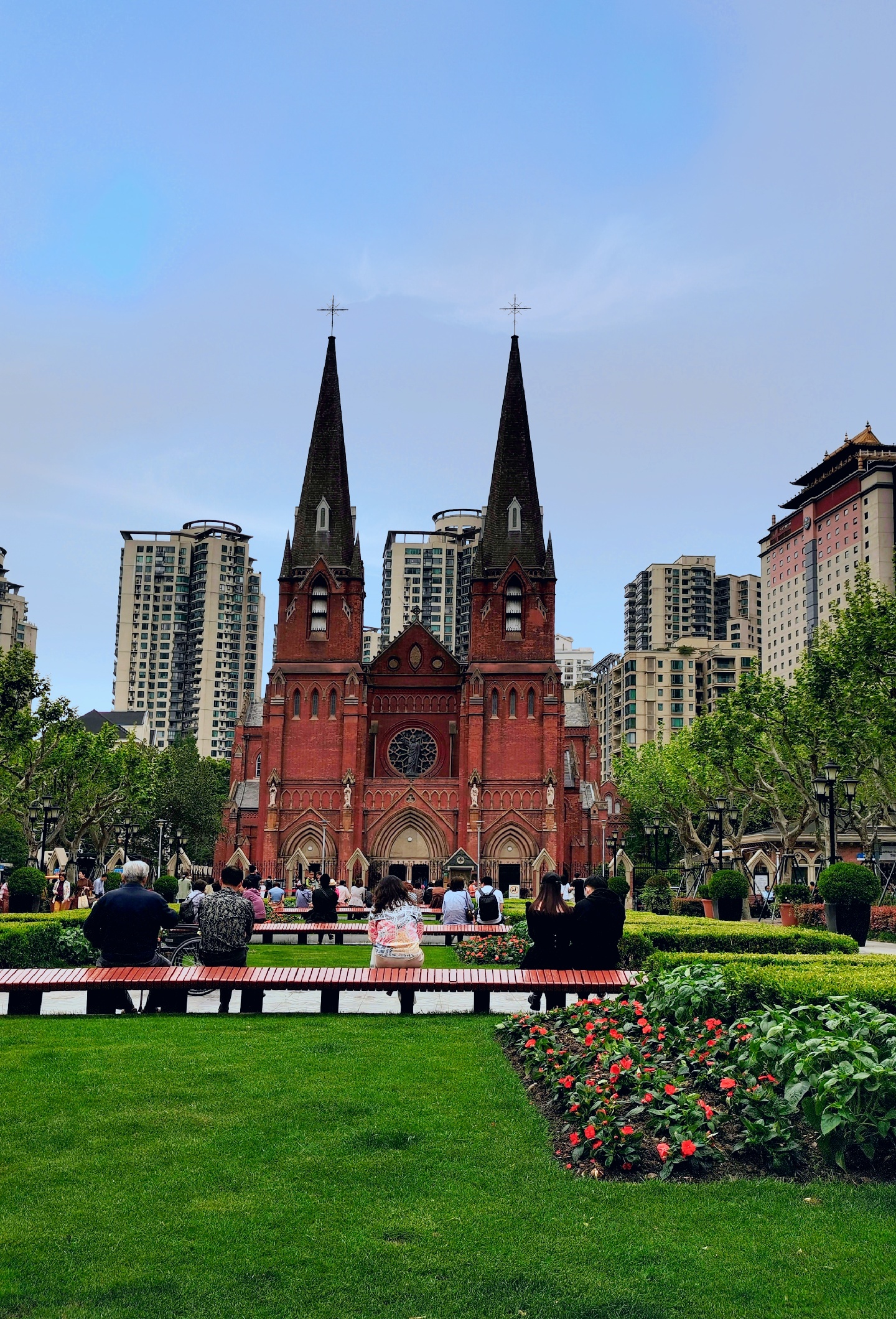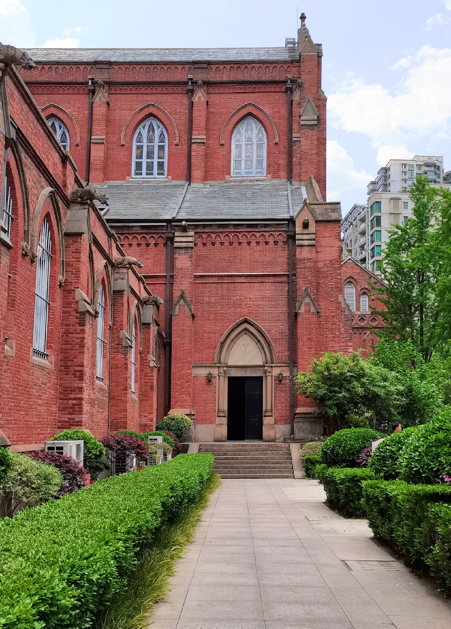 上海徐家汇天主教堂位于蒲西路158号,正式的名称为“圣依纳爵主教座堂”,占地面积2670平方米,建筑面积6670平方米,可容纳3000余人。教堂由英国建筑师道尔达(W.M.Dowdall)设计,法国上海建筑公司于1904年动工建造,1910年正式落成。(1)