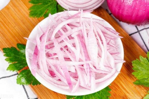 1、先把洋葱外面的老皮剥掉,切头去尾,然后对半切开,再切成细丝,放入盆中,加入2勺盐、2勺白醋,加水没过洋葱丝浸泡8分钟左右,减少洋葱的辛辣味道;