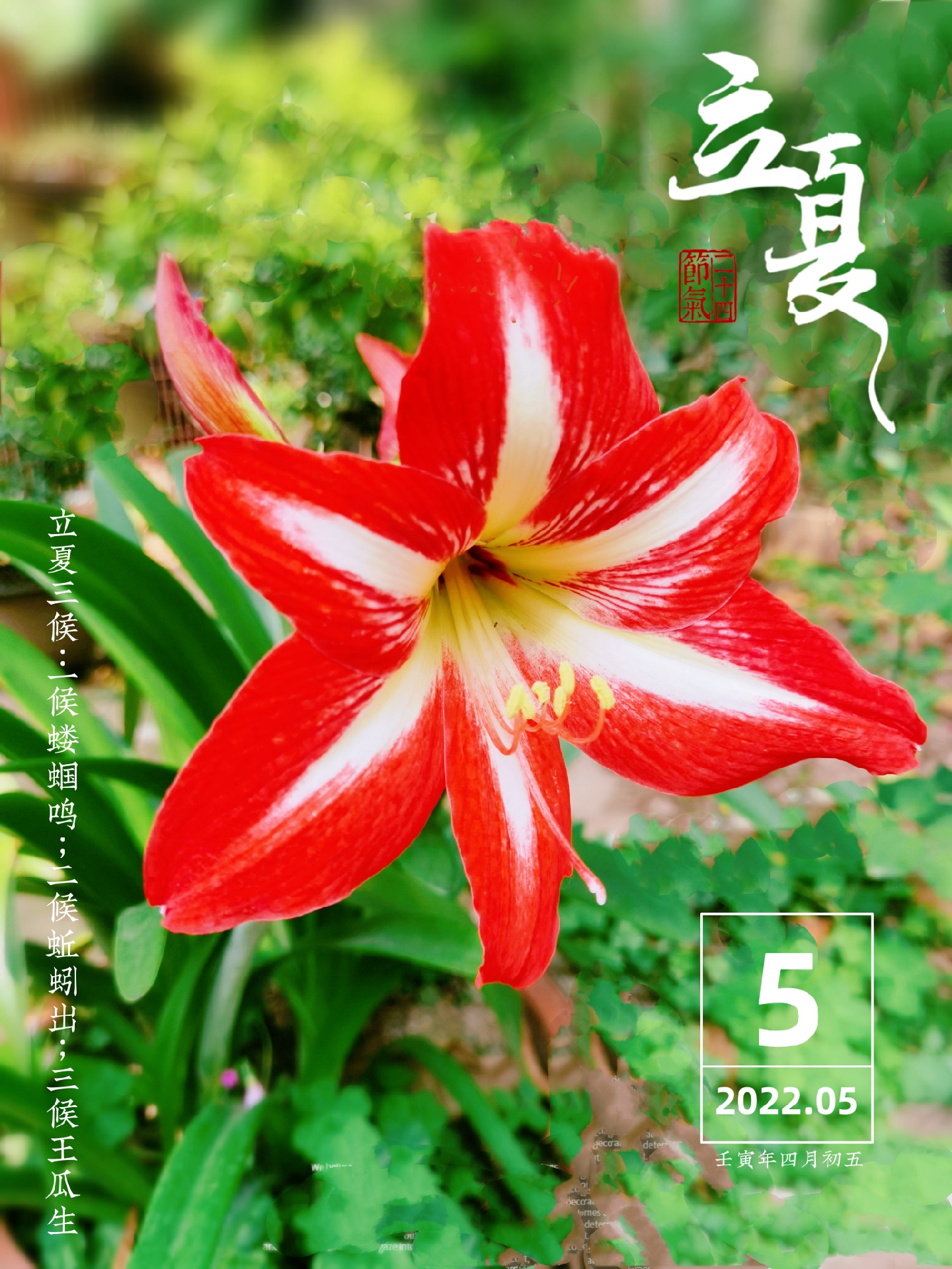 #立夏 2023年5月6日,周六,农历三月十五七,立夏。夏季的第一个节气。表示告别春天,是夏天的开始,因此又称“春尽日”。时至立夏,万物繁茂。“孟夏之日,天地始交,万物并秀。立夏”的“夏”是“大”的意思,是指春天播种的植物已经直立长大了。