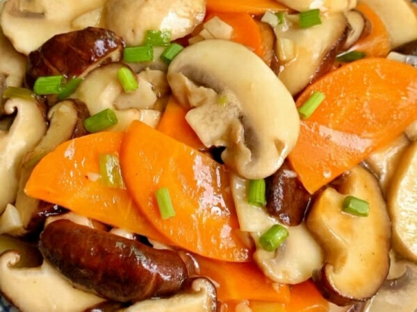 准备食材:胡萝卜,鲜香菇,葱花,蒜末。