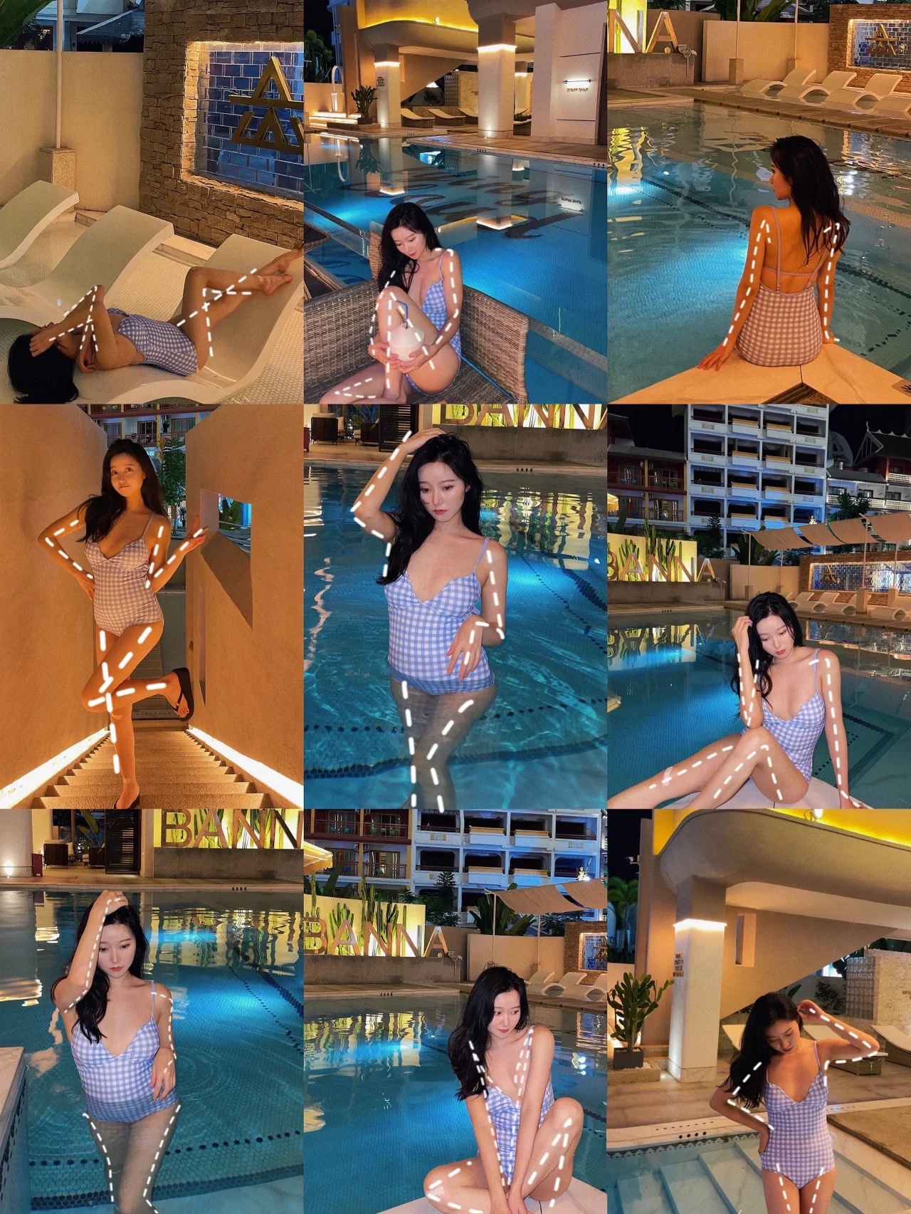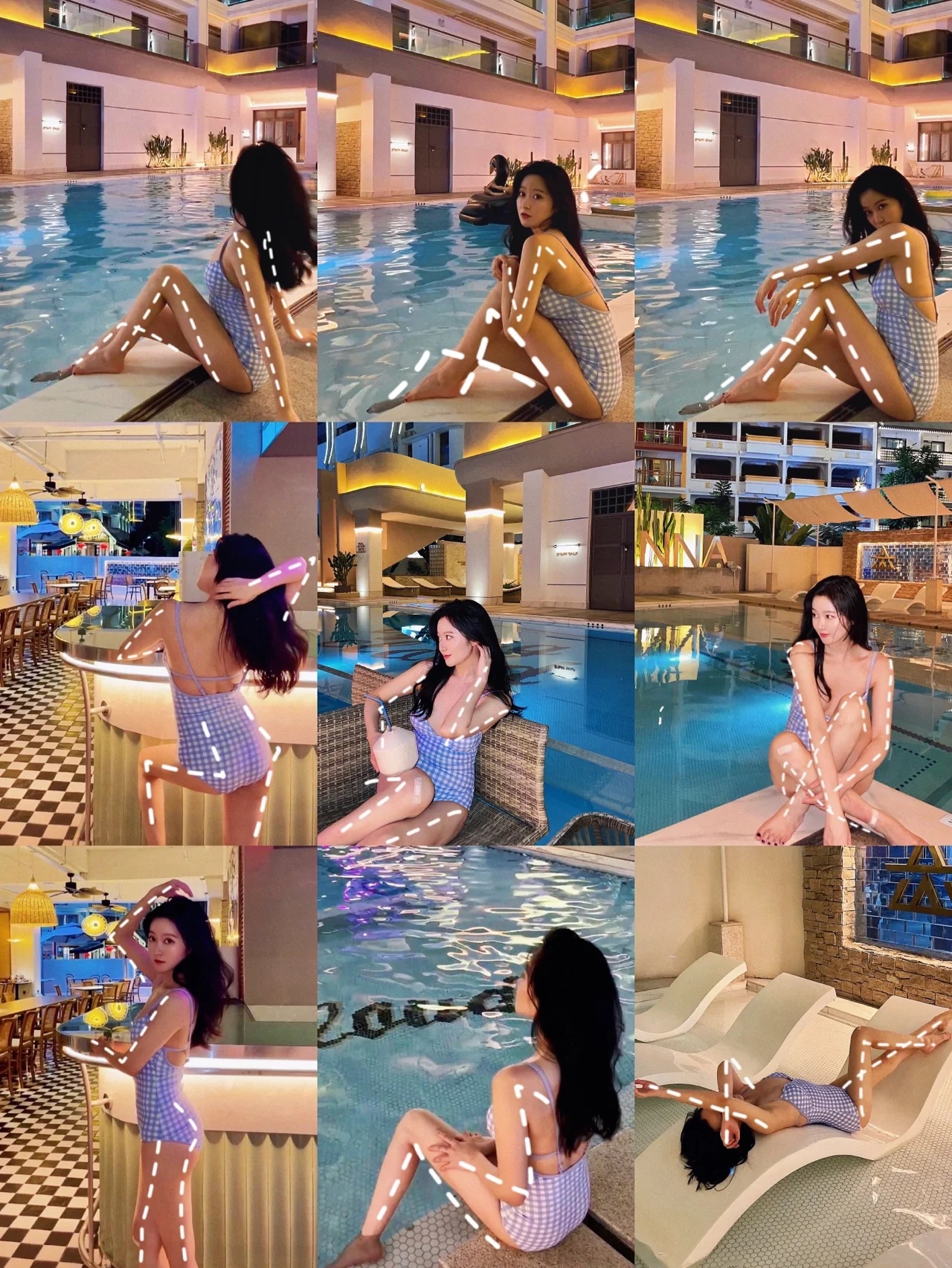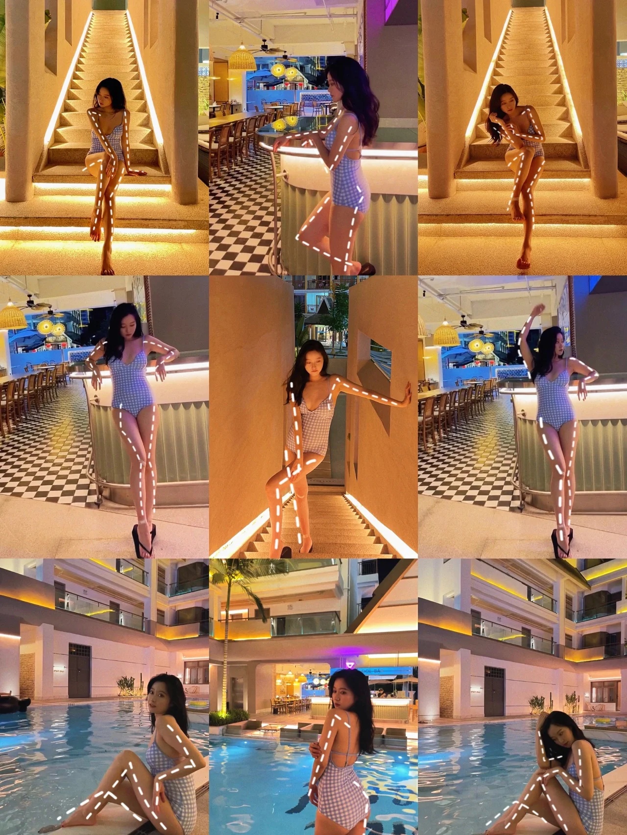 4.夜晚泳池闪光灯必不可少,泳池边灯光亮就不用了,有一些吧台霓虹灯更有感觉