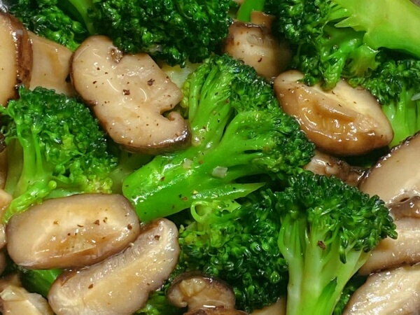 3.煸炒至香菇变软后,再倒入焯好的西蓝花继续翻炒均匀,加入适量的食盐和胡椒粉,继续翻炒均匀入味,即可出锅开吃。