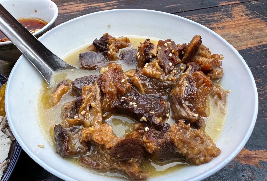 马如骐的后人马文洪伯伯非常热情地接待了我,给我准备了巍山回民宴席老八碗中的红烧牛肉和白斩鸡,还有当地人结婚时才吃的糯米糖饭,非常知感。