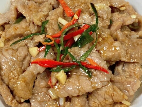食材准备:牛肉、豆芽、蒜末、红椒丝、葱丝、白胡椒粉。