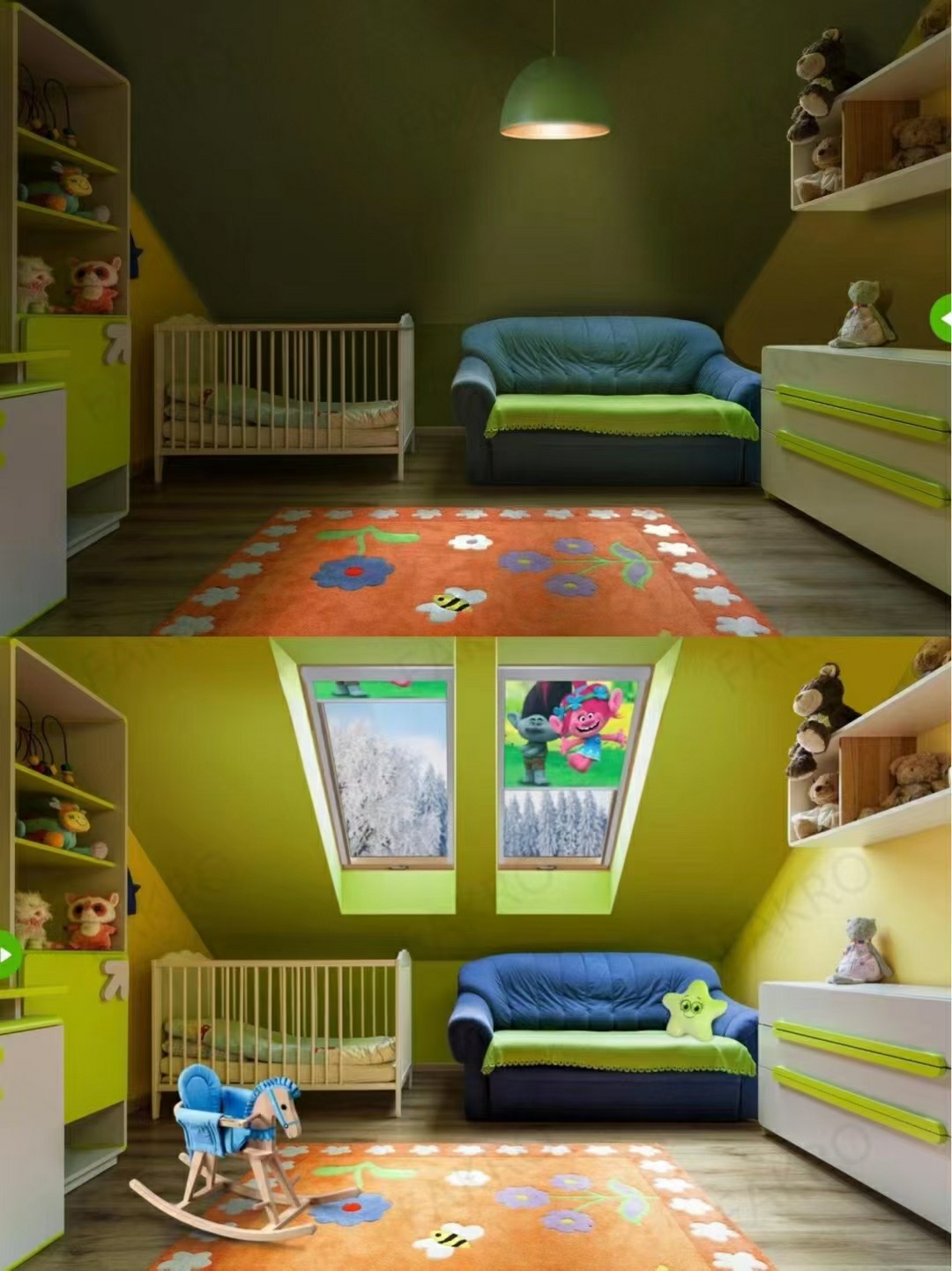 【阁楼装修 天窗】黑暗🆚阳光,肉眼可见的告诉我们阁楼为什么需要斜屋顶天窗,没有窗的阁楼,总是感觉少了灵魂。