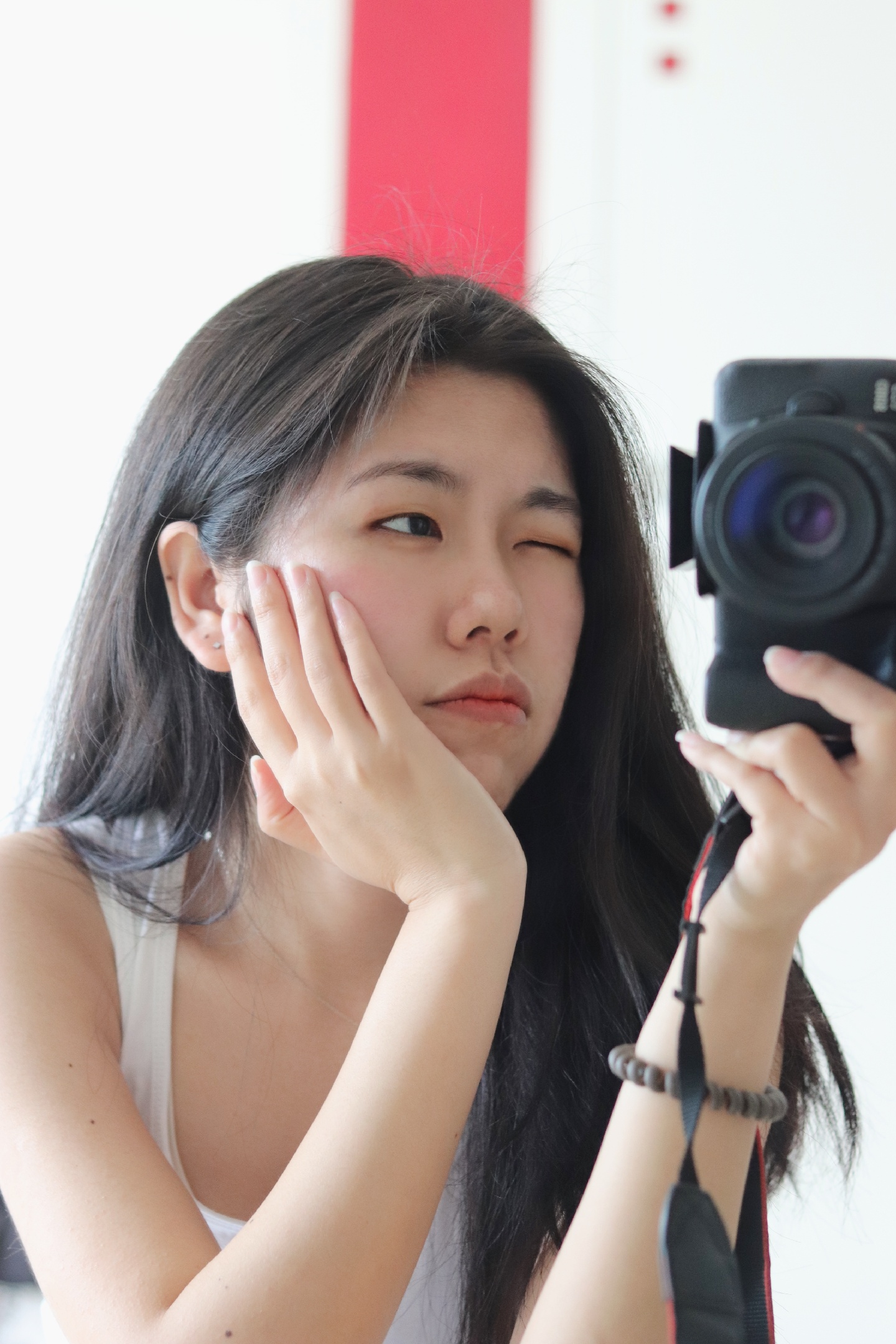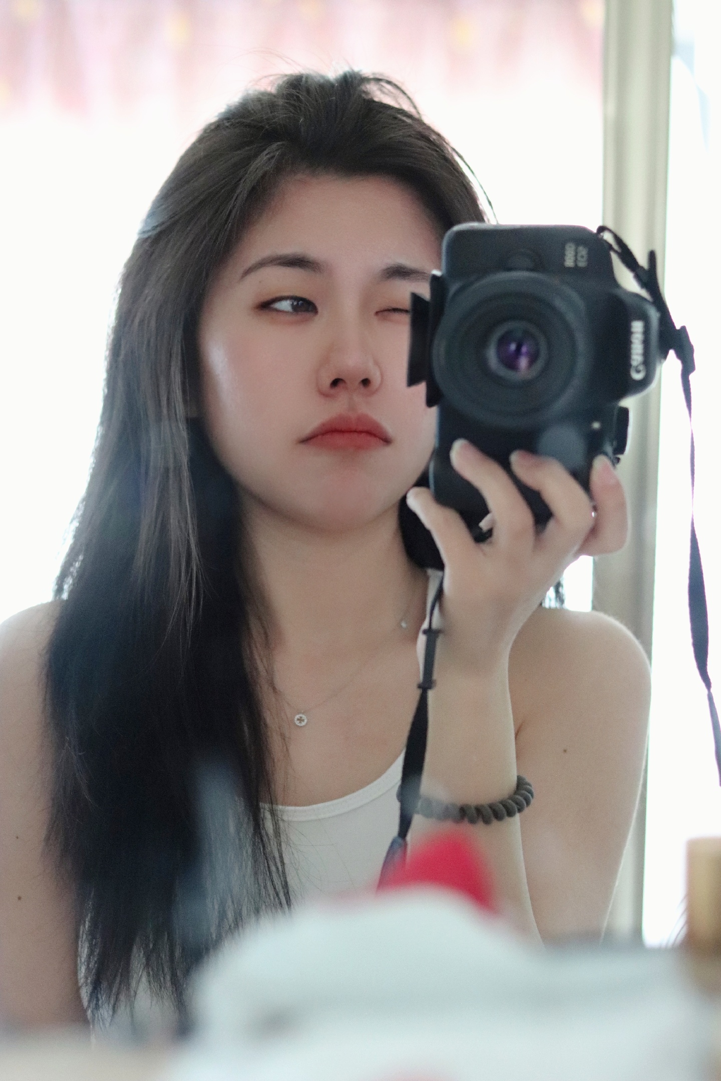 吼吼吼 我把镜子 拿到外面了~所以才有的图几背景绿色树叶~