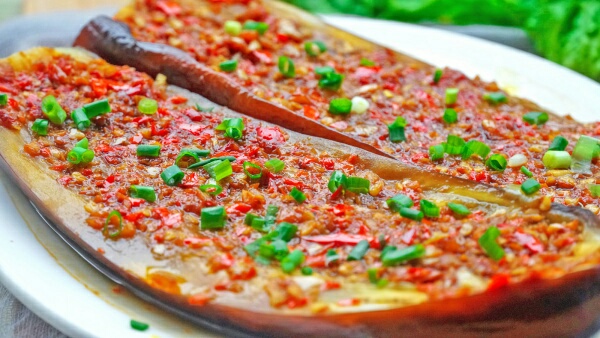 4、现在茄子登场了,放微波炉高火6分钟,如果没有微波炉的就用蒸锅;