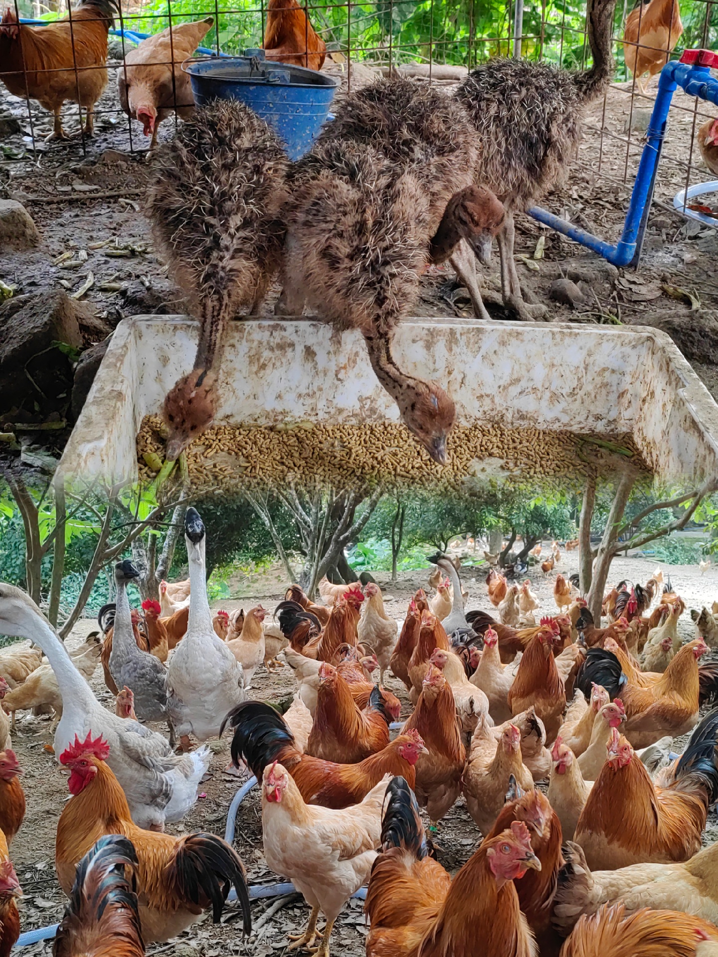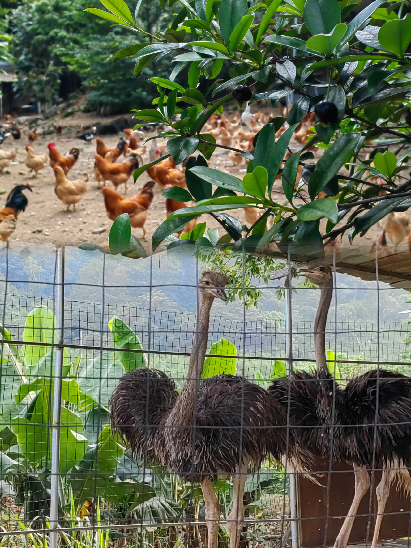 民宿有私房菜,还有鸵鸟、鸡鸭鹅给入住的客人观赏,别有一番风味,一边吃饭一边看河对面的小动物🉑