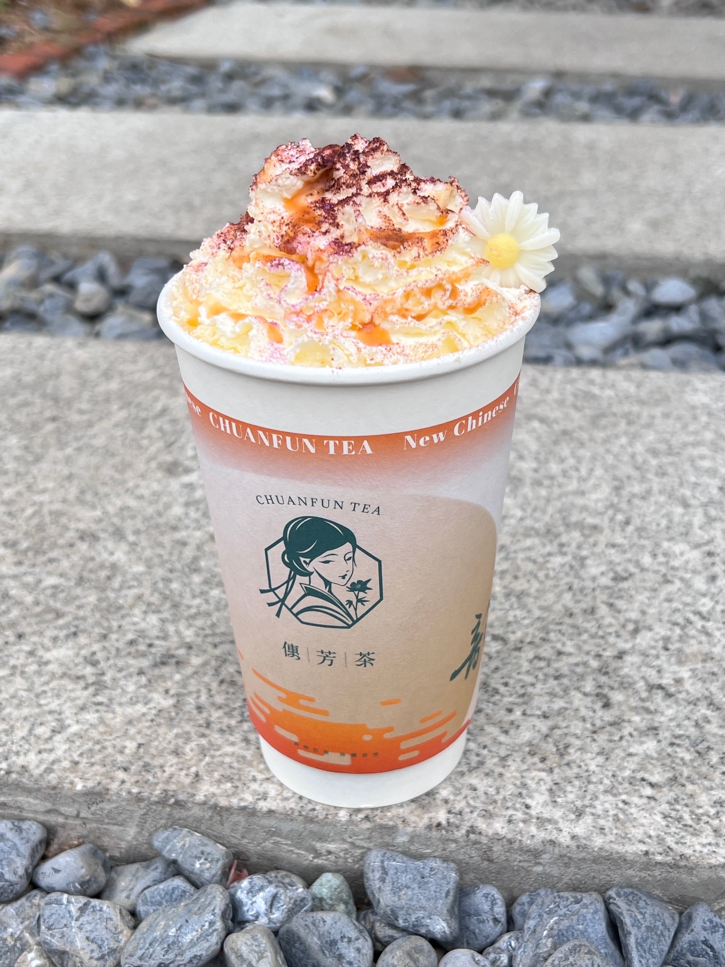 南京雨花茶与茉莉花茶的拼配,喝一口,兩花的清香紧直与茉莉的芳香逐渐释放在舌尖。将奶茶的口感激发得恰到好处
